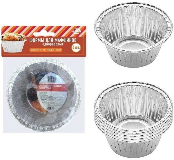 Формы для маффинов из алюминиевой фольги - идеальны для приготовления маффинов. Формы из алюминия имеют большую теплопроводность, равномерно нагреваются, исключая места перегрева и холодные края - это позволяет значительно быстрее приготовить любимый десерт. Формы могут подвергаться нагреванию до температуры 280°С, заморозке до -40°С, а также их можно использовать для запекания, разогрева и выпечки как в обычных, так и в микроволновых (СВЧ) печах. Использование форм позволяет добиться наилучших результатов при приготовлении, получить привлекательный вид готового блюда, сохранить все вкусовые характеристики используемых продуктов. Алюминиевые формы не поглощают влагу и жир, препятствуют высыханию, потере вкуса и впитыванию посторонних запахов, предохраняют продукты от порчи под действием света. Одноразовые алюминиевые формы не только облегчают процесс приготовления пищи, но и экономят время, которое не нужно тратить на мытье посуды, используемой при приготовлении пищи. Изготовлены из алюминия. Алюминий, из которого изготовлены формы - не токсичен, не обладает свойством накапливаться в организме человека, а также не вступает ни в какие химические реакции с продовольственными продуктами. Внимание! Не стоит использовать формы для хранения кислых и соленых продуктов. При использовании форм в СВЧ-печах соблюдайте правило: форма должна быть расположена в СВЧ-печи минимум на 2см от стенок печки или от другой посуды из алюминиевой фольги.