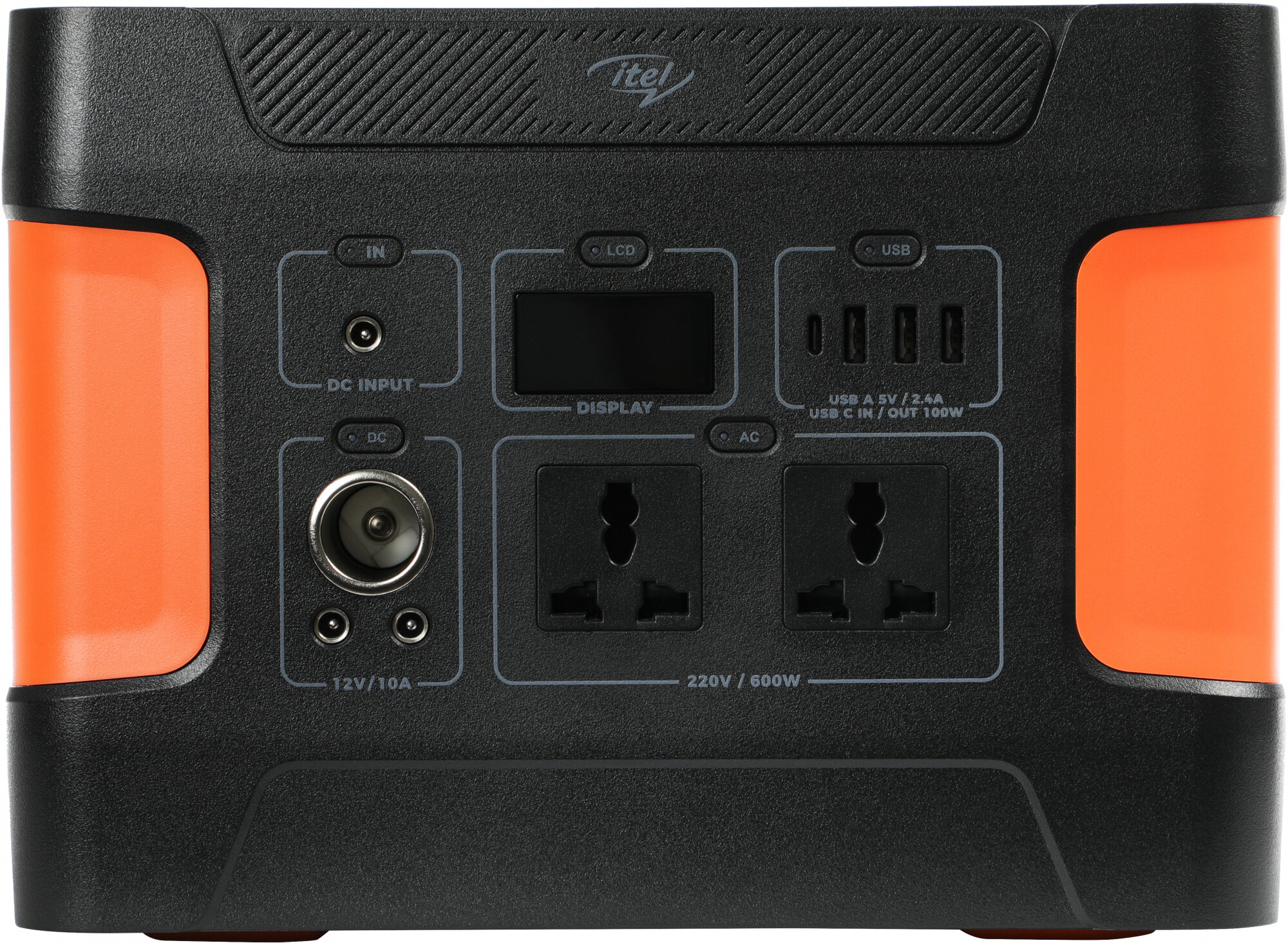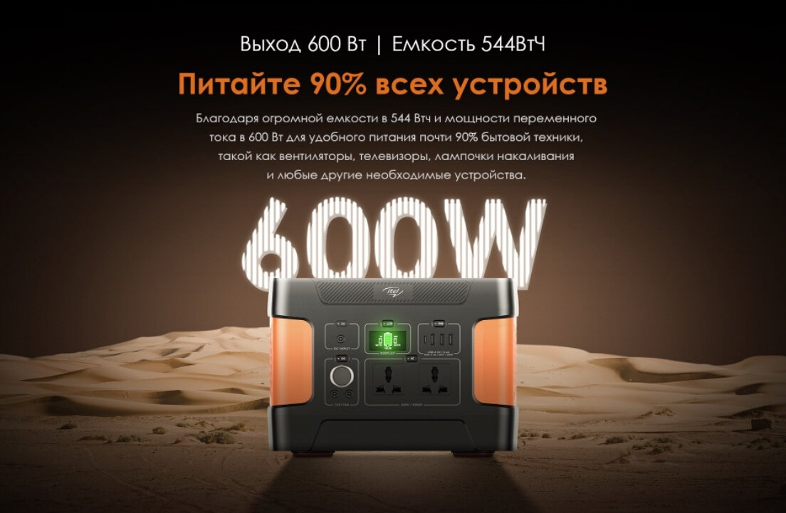 Мобильный аккумулятор ITEL Solar Generator 600(ISG-65) черный/оранжевый, емкость батареи 150000mAh Li-Ion, USB разъемов 4, сила тока на выходе 5A+3A+2.1A