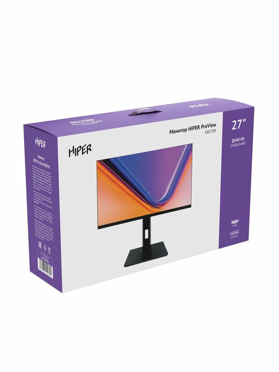 Монитор Hiper 27" черный IPS LED 5ms 16:9 HDMI M/M матовая HAS Piv 250cd 178гр/178гр 2560x1440 75Hz FreeSync DP 2K 5.25кг