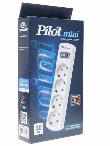 Сетевой фильтр ZIS Pilot Mini 4 розетки 3м Белый Pilot Mini 3M
