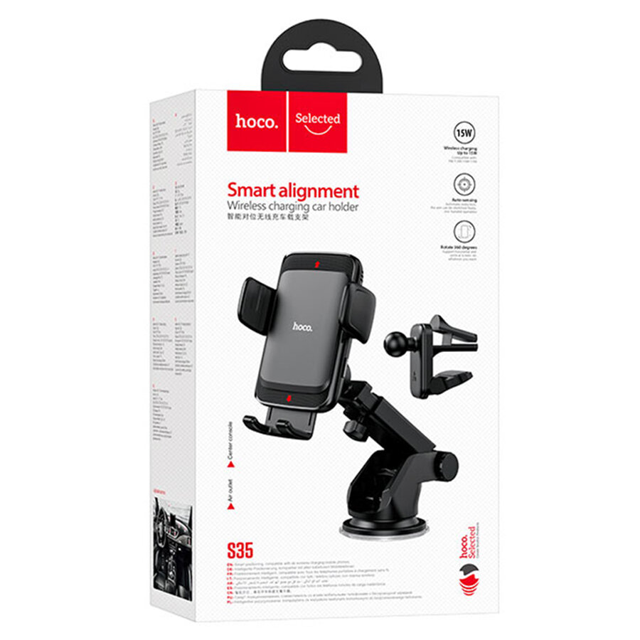 Держатель автомобильный Hoco 6931474761361 беспровод. зарядка присоска/воздуховод черный S35