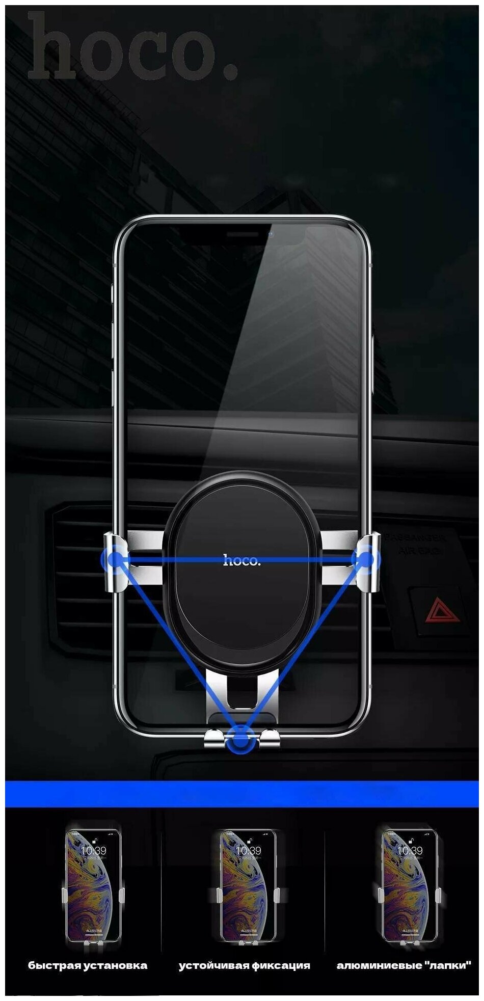 Держатель автомобильный Hoco 6931474760296 на воздуховод темно-серый CA56