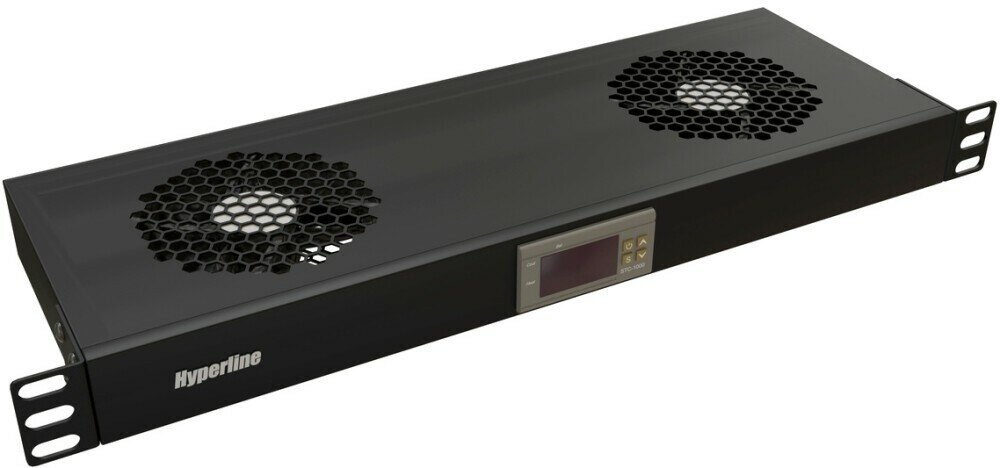 Модуль вентиляторный Hyperline () 4 вент. с термостатом черный (упак.:1шт)
