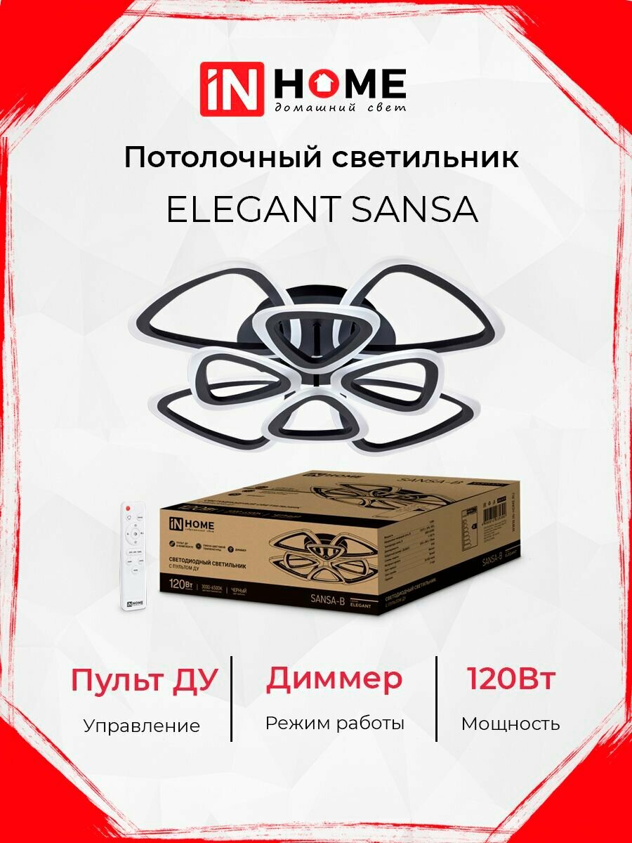 Светильник светодиодный IN HOME ELEGANT SANSA-120В 120Вт 230В 3000-4000-6500К 8400лм 650х650х130мм с пультом ДУ 4690612035390