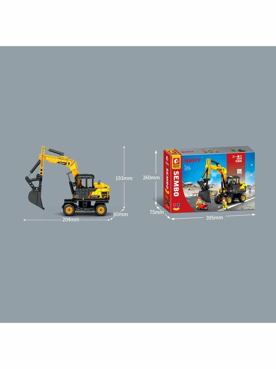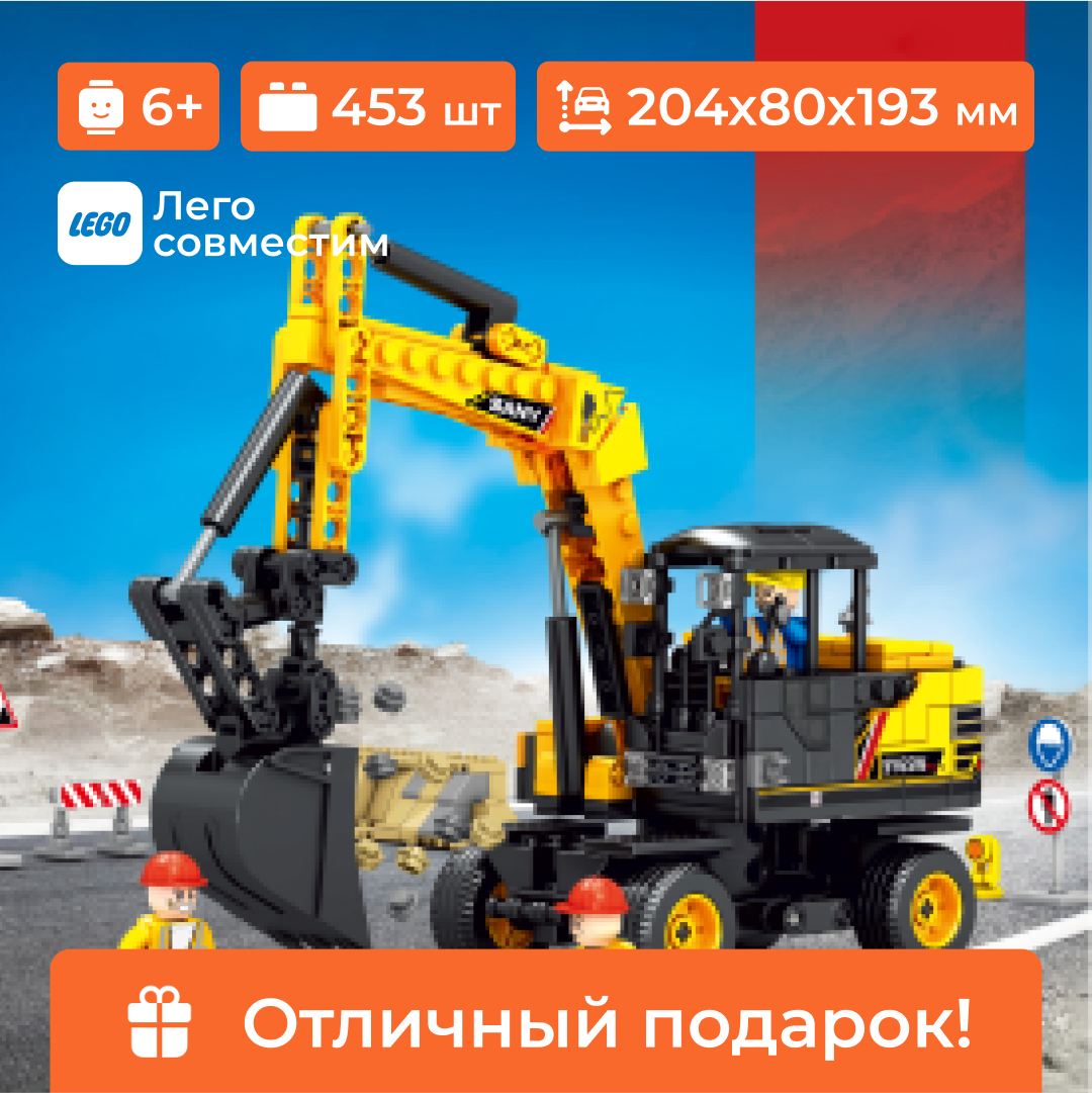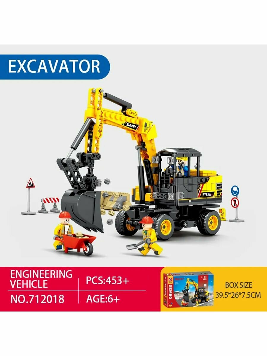 Конструктор Sembo Block строительный колесный экскаватор "Sany" 453 детали 712018