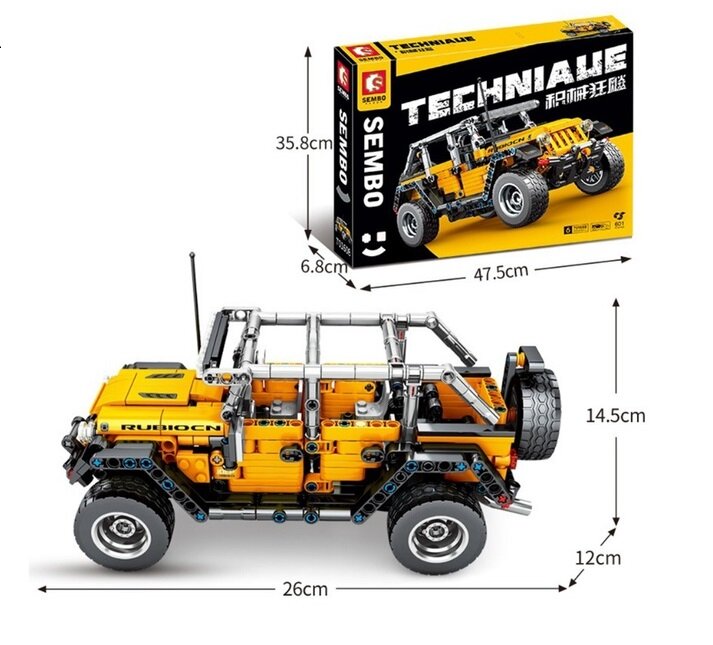 На сегодняшний день товар «Конструктор Sembo Block "Jeep Wrangler" 601 деталь 701608» можно купить с кешбеком в 1 магазине: Яндекс.Маркет