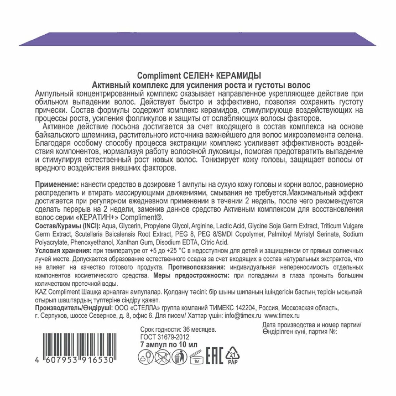Активный комплекс для усиления роста и густоты волос Compliment Селен+ Керамиды 7х10 мл