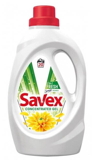 Концентрированный гель с формулой защиты цвета вашей одежды. Обеспечивает потрясающую эффективность очистки от стирки к стирке. Формула Savex обеспечивает глубокое очищение, а специально разработанные ароматы бережно обволакивают ткани. Подходит для всех видов тканей, кроме шерсти и шелка. Для ручной и машинной стирки. Оптимальная температура воды для максимально эффективной стирки от 30 до 60 градусов. Количество геля на загрузку стиральной машины 4-5 кг: от 55 до 110 мл, в зависимости от жесткости воды и степени загрязнения. Для ручной стирки при объеме воды 10 л: 40 мл. Для достижения наилучшего результата рекомендуем использовать вместе с другими продуктами для стирки бренда SAVEX