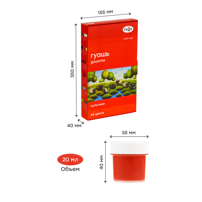 Гуашь серии "Мультики" разработана совместно с педагогами специально для детей школьного возраста от 6 до 9 лет. Краски отличаются высокой плотностью и укрывистостью, чистотой цвета, легко набираются на кисть и наносятся на бумагу или картон, хорошо разводятся и размываются водой. Яркие цвета прекрасно смешиваются между собой. Краски изготовлены на основе натуральных компонентов и высококачественных пигментов. Легко смываются с рук и отстирываются с одежды. Гуашь упакована в удобную картонную коробку из микрогофрокартона со вставкой-ложементом, фасуется в пластиковые герметичные баночки с завинчивающейся крышкой. Объем баночки - 20 мл. Товар представлен в ассортименте без возможности выбора модели!