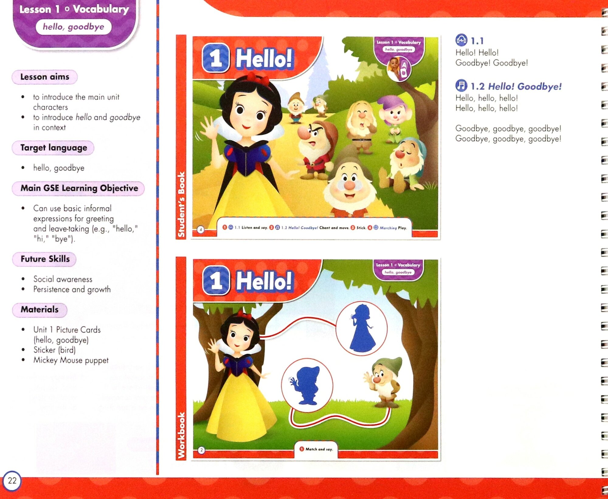 Этот курс английского языка построен на строгих педагогических основах и помогает заложить основу для таких навыков как самосознание и социальная осведомленность, настойчивость и стремление к развитию с раннего возраста. Диснеевские персонажи мгновенно узнаваемы и помогают создать знакомый контекст для нового языка, что дает детям чувство безопасности и комфорта. Каждый блок посвящен разным персонажам, что придает курсу широкую привлекательность и сохраняет содержание свежим и захватывающим.