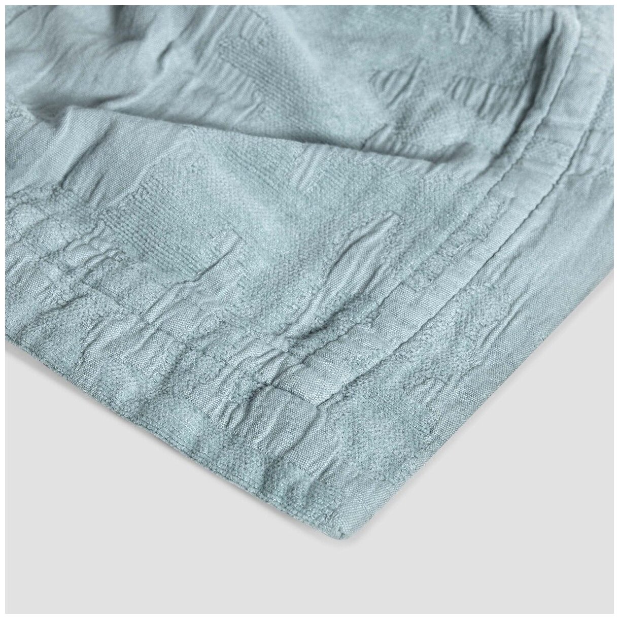 Это однотонное покрывало привлекает оригинальной фактурой жатой ткани, имитирующей рельефную венецианскую штукатурку. Изысканный мятно-бирюзовый оттенок создаст в спальне легкую прохлад