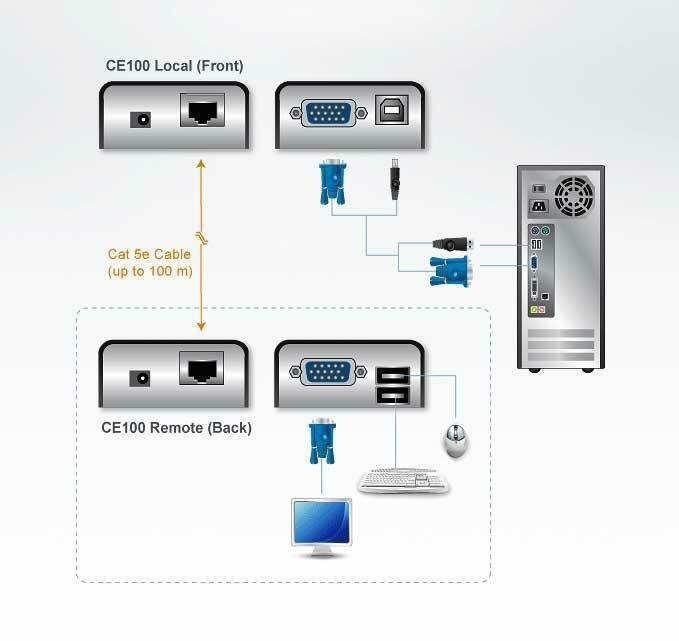 ATEN USB VGA Cat 5 Mini KVM Extender (1280 x 1024@100m)