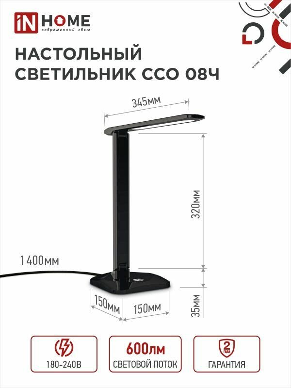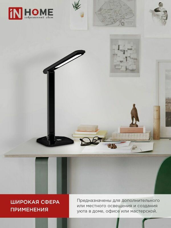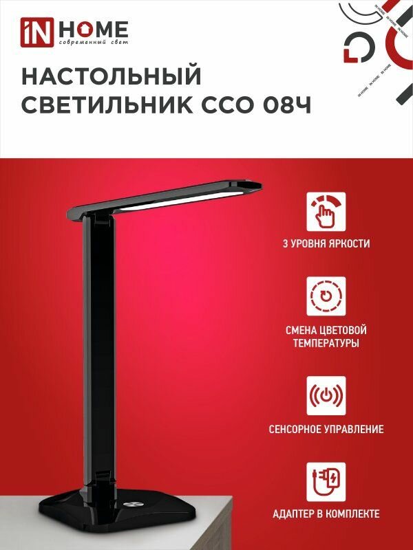 Светильник светодиодный IN HOME настольный ССО 08Ч 12Вт 3000-6500К 600лм сенсор-диммер с адаптером черный 4690612036564