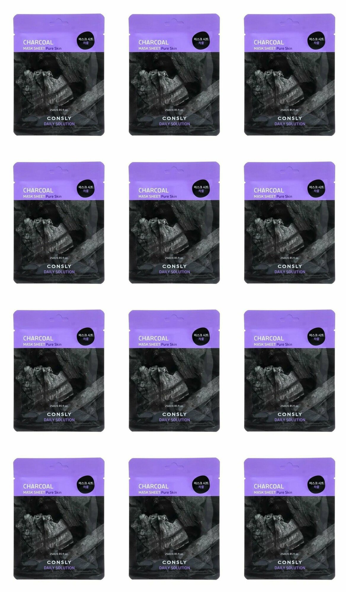 Тканевая маска Daily Solution Charcoal Mask Sheet с древесным углем от косметического бренда Consly разработана для интенсивного ухода за лицом. Средство состоит из гипоаллергенной салфетки, повторяющей контуры лица и обильно пропитанной биоактивной эссенцией. Маска плотно покрывает кожу, обеспечивая быстрое и глубокое проникновение компонентов в ткани. Состав эссенции включает мощный природный абсорбент. Древесный уголь нейтрализует не только излишки кожного сала и отмершие чешуйки тканей, но и накопленные кожей токсины, способствует очищению пор, предупреждает и купирует размножение болезнетворных бактерий и грибков, регулирует работу сальных желез. Маска обогащена гиалуроновой кислотой для активного увлажнения. В комплекте 12 штук