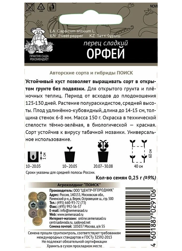 Сервис сравнения цен СкидкаГИД предлагает сравнить цены на товар «Семена Перец Поиск Орфей 0.25 г»