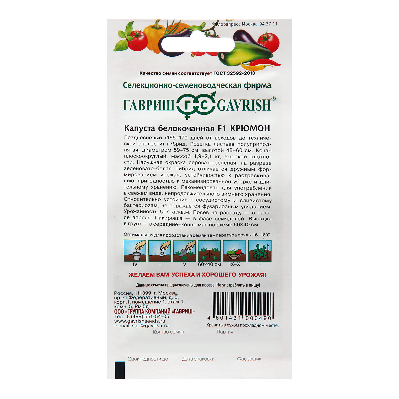 Семена Капуста белокочанная Гавриш Крюмон F1 01 г