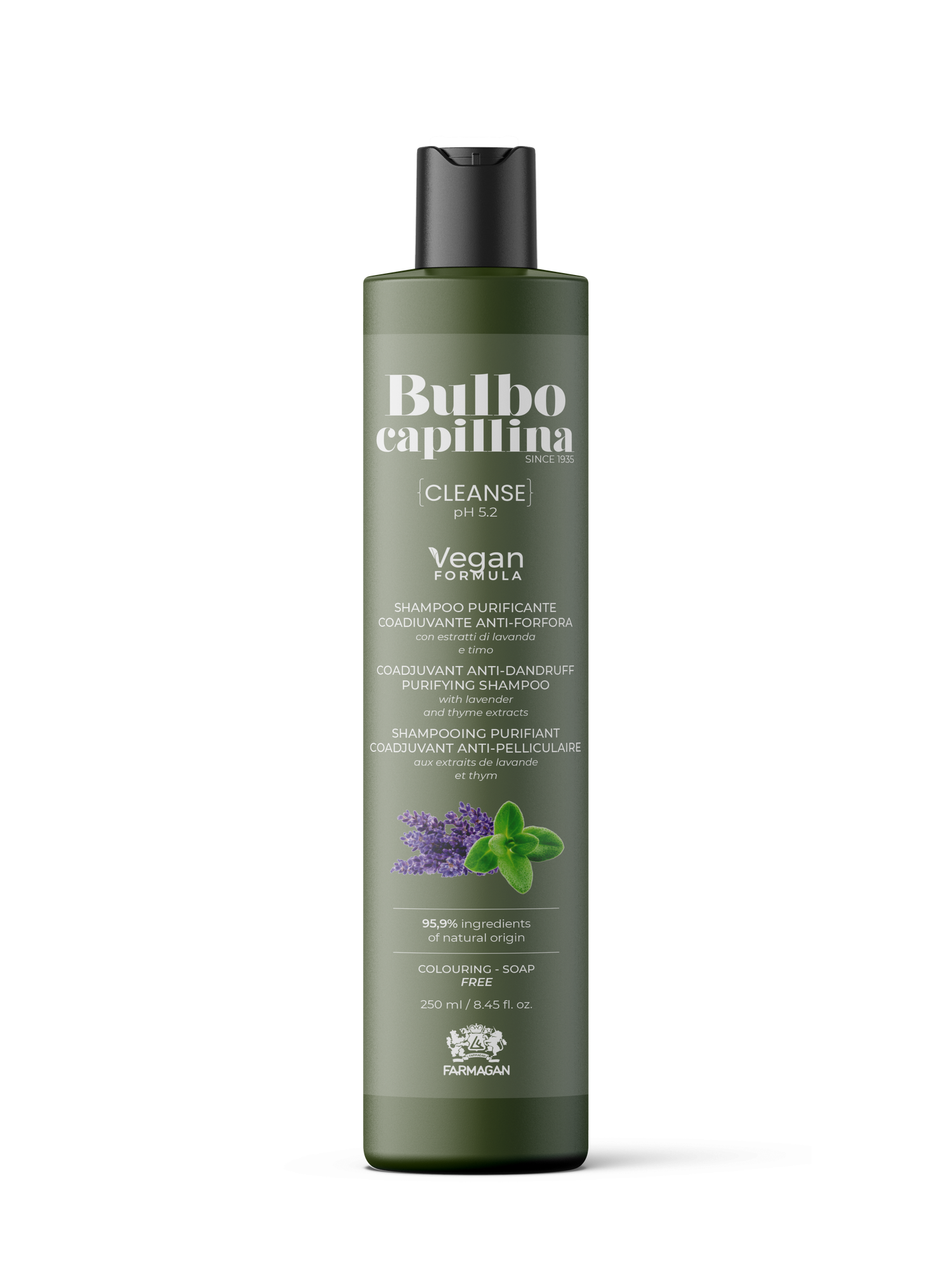 {СИЛА ПРИРОДЫ}Bulbo-это новая профессиональная линия Farmagan, созданная для естественного благополучия волос и кожи головы.Серия Capillina - создана для решения проблем кожи головы.Шампунь для волос Очищение Farmagan Bulbo Capillina Cleanse для предотвращения появления жирной и сухой перхоти, с восстанавливающим эффектом и регуляцией кожного жира.Формула на основе экстракта лаванды и тимьяна.Экстракт цветков лаванды узколистной и экстракт листьев тимьяна обыкновенного оказывают очищающее и успокаивающее действие. Идеально подходит для облегчения зуда, снятия дискомфорта из-за наличия сухой или жирной перхоти на коже головы.Веганская формула - 95,9% ингредиентов натурального происхождения.