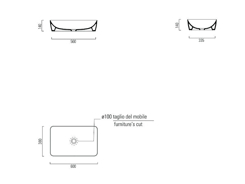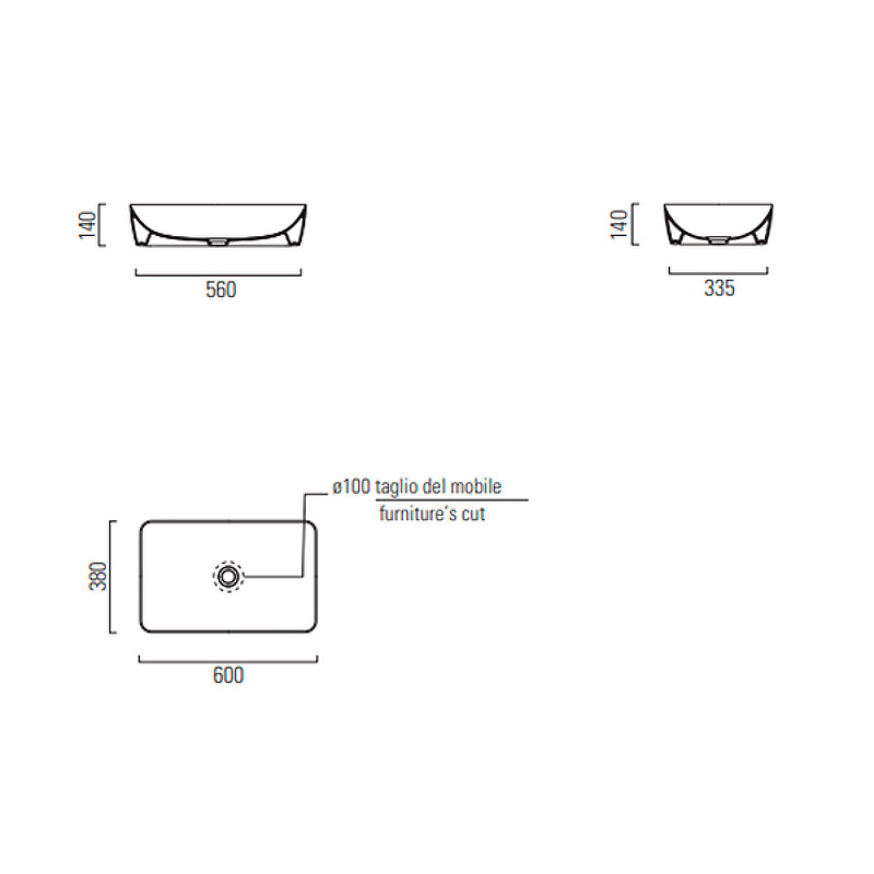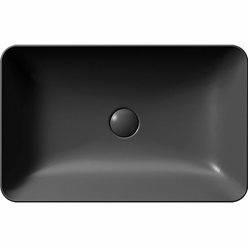 Размеры: 380 мм х 600 мм х 140 мм. Материал: фаянс. Цвет: Черный матовый. Форма: прямоугольная. Монтаж: накладной на столешницу или тумбу. Без отверстия под смеситель. Без перелива