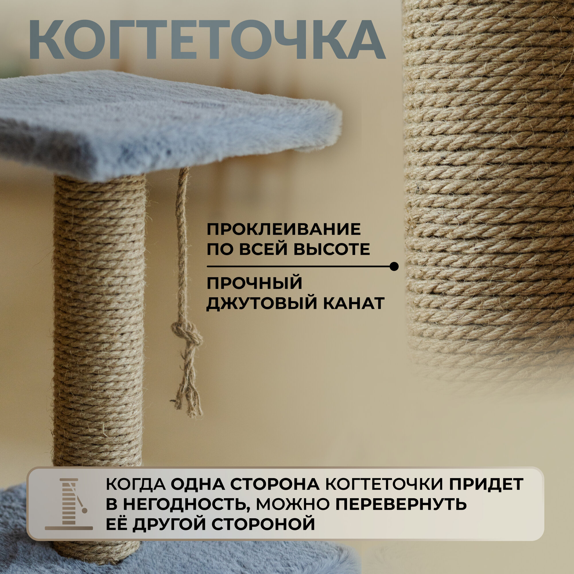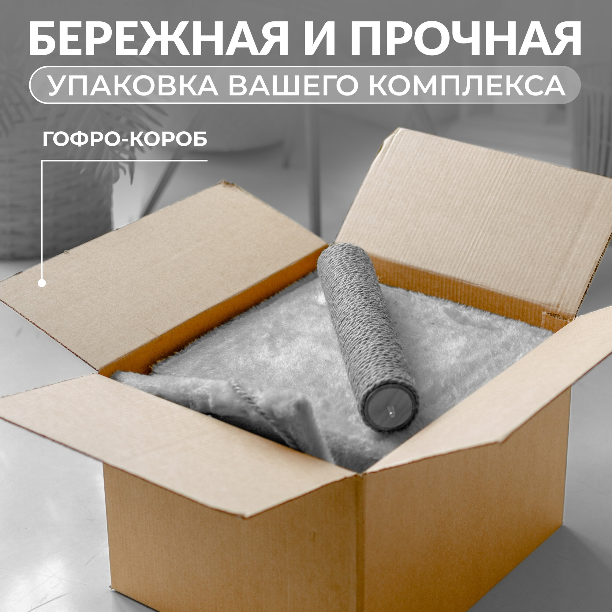 Конструкция сочетает в себе все необходимое для активностей и комфортного отдыха вашего питомца: укромный домик для кошки, когтеточка, лежанка и игрушка. В комплект также входит приятный бонус - махалка. Мы используем мех премиального качества - он очень мягкий и нежный. Джутовый канат на столбике проклеивается по всей высоте когтеточки. Комплекс занимает минимум места - 32*32 см. Общая высота конструкции - 65 см. Наше главное преимущество - проверенная прочность. В опорных столбиках-когтеточках мы используем только фанерные втулки (никакой пластмассы!). Когтеточка-столбик имеет одинаковые крепления с двух сторон, и когда кошка раздерет одну часть, Вы сможете перевернуть столбик и продлить срок службы комплекса. Производство максимально автоматизировано, что сводит процент брака у нулю. Домик собирается за считанные секунды без использования инструмента. Дается гарантия от производителя на крепления - 3 месяца (при соблюдении всех правил по эксплуатации).Комплекс для кошки разбирается и упаковывается в прочный гофро-короб, что обеспечивает его сохранность и минимизирует риски порчи при транспортировке.