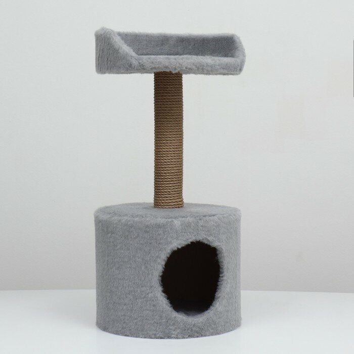 Домик-когтеточка для кошек обеспечивает пространство для отдыха, игры и точения когтей. Комплекс выполнен из искусственного меха и прочного джута. На комплексе размещен лежак для отдыха. Домик обеспечивает вашему питомцу уютное место и безопасность. Также есть джутовая дразнилка которая позволяет кошкам играть и развлекать себя. Столб-когтеточка установлена на конструкции, покрыта специальным материалом, который позволяет кошкам точить свои когти и предотвращает повреждение мебели в доме.
