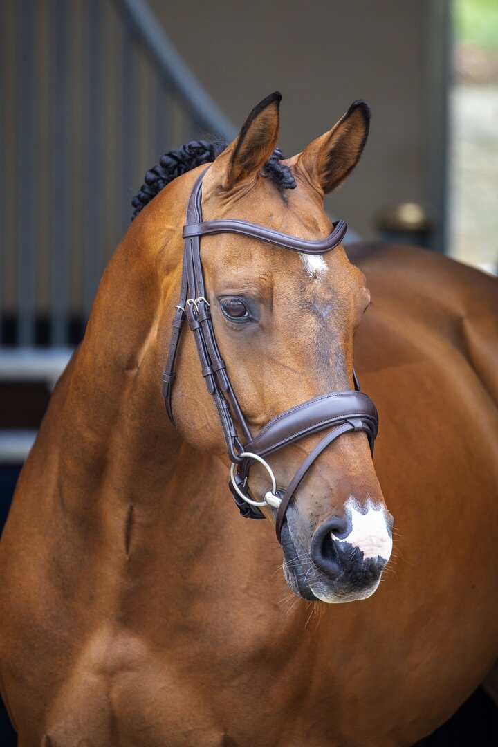 Элегантное и очень комфортное оголовье LUSSO "Dressage" с широким и мягким капсюлем. Изогнутый мягкий капсюль снимает давление со скул, челюсти и чувствительных нервных окончаний головы лошади. Мягкая интегрированная подушка в области носа обеспечивает большее распределение давления на чувствительные зоны.