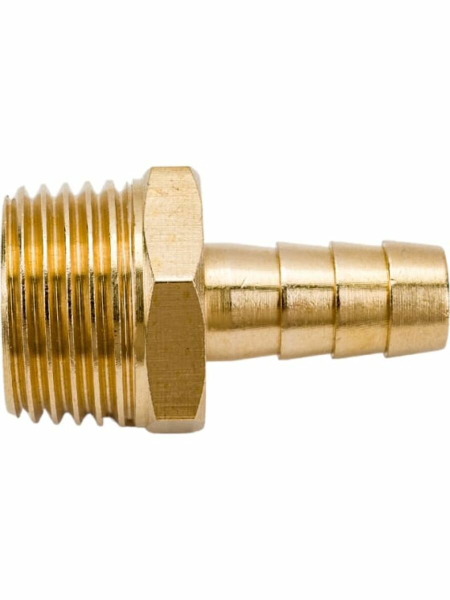 Соединение наружная резьба G1/2 х елочка 10 мм ECO AB-MT12/E10 - это штуцерное соединение с наружной резьбой. Применяется для соединения пневматических шлангов с внутренним диаметром 10 мм с другими элементами пневмосистемы, имеющими внутреннюю резьбу G1/2". Латунный корпус исключает возможность появления коррозии.