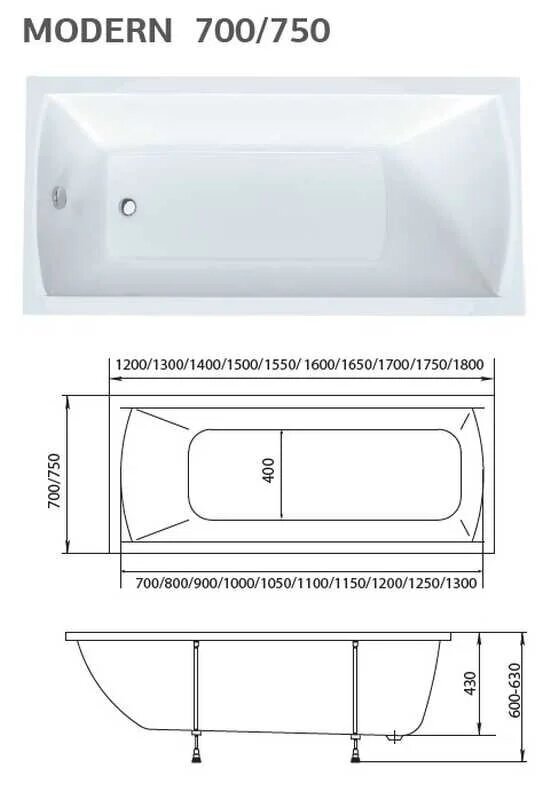 Ванна акриловая MarKa One Modern 130x70 01мод1370 белая