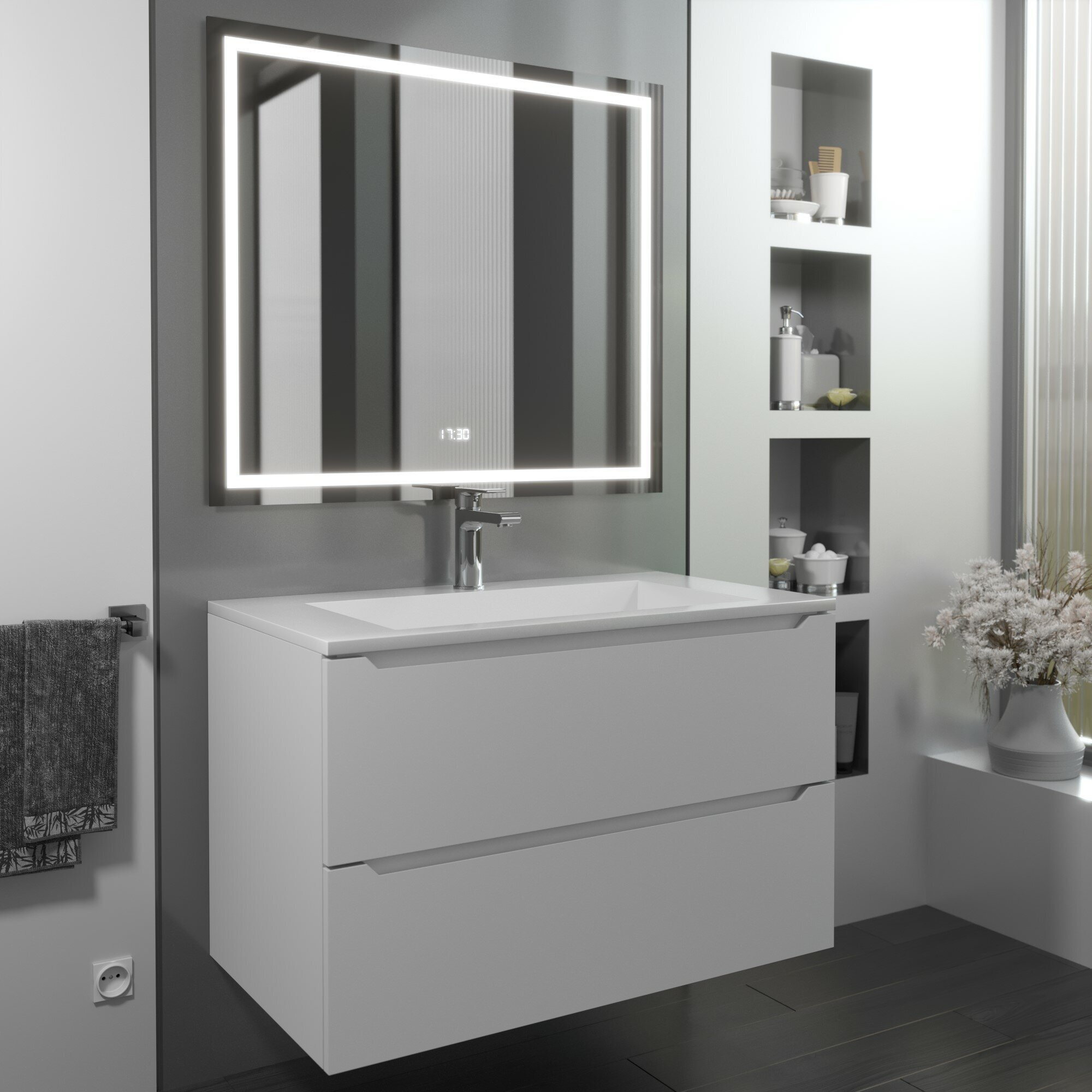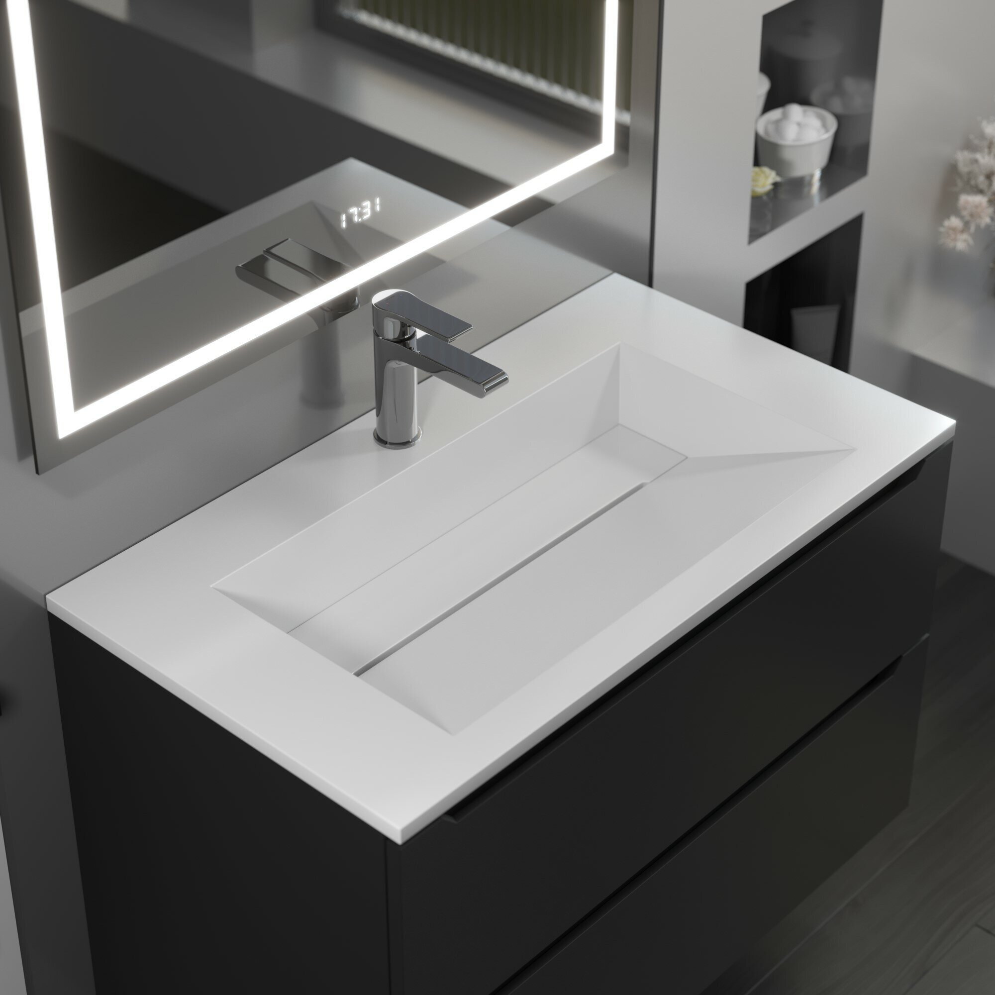 Раковина для ванной из коллекции Uperwood Next с декоративной накладкой для слива изготовлена из литьевого мрамора с покрытием гелькоут, которое выполняет как декоративную, так и защитную функцию.Материал гарантирует гигиеническую безопасность изделий и характеризуется высокими бактерицидными свойствами.Кроме того, каждая раковина из коллекции Uperwood Next обладает уникальными характеристиками прочности, устойчивости к истиранию, а также выдающейся стойкостью и качеством цвета.Лаконичная форма раковин отлично впишется любой современный интерьер ванной комнаты. Раковина имеет отверстие для установки смесителя, а также бортик для размещения ванных принадлежностей.Для раковины Uperwood Next подходят подвесные тумбы Uperwood Barsa шириной 80 см черного/дуб сонома или белого/дуб сонома цвета, а также тумбы под раковину Uperwood Tanos 80 см белого или черного цвета, а также белого цвета с графитовыми вставками.