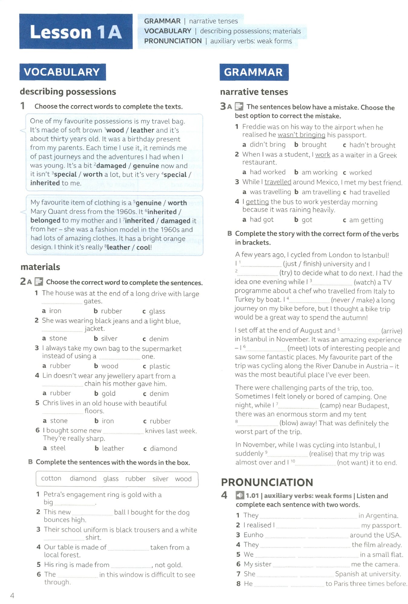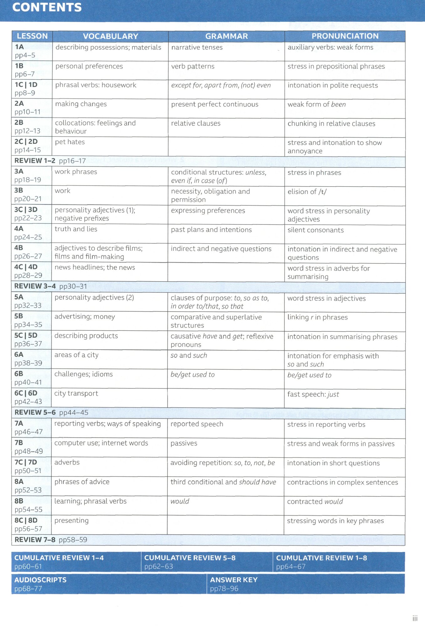 The Workbook provides additional practice of material covered in the eight units of the Students' Book, including: