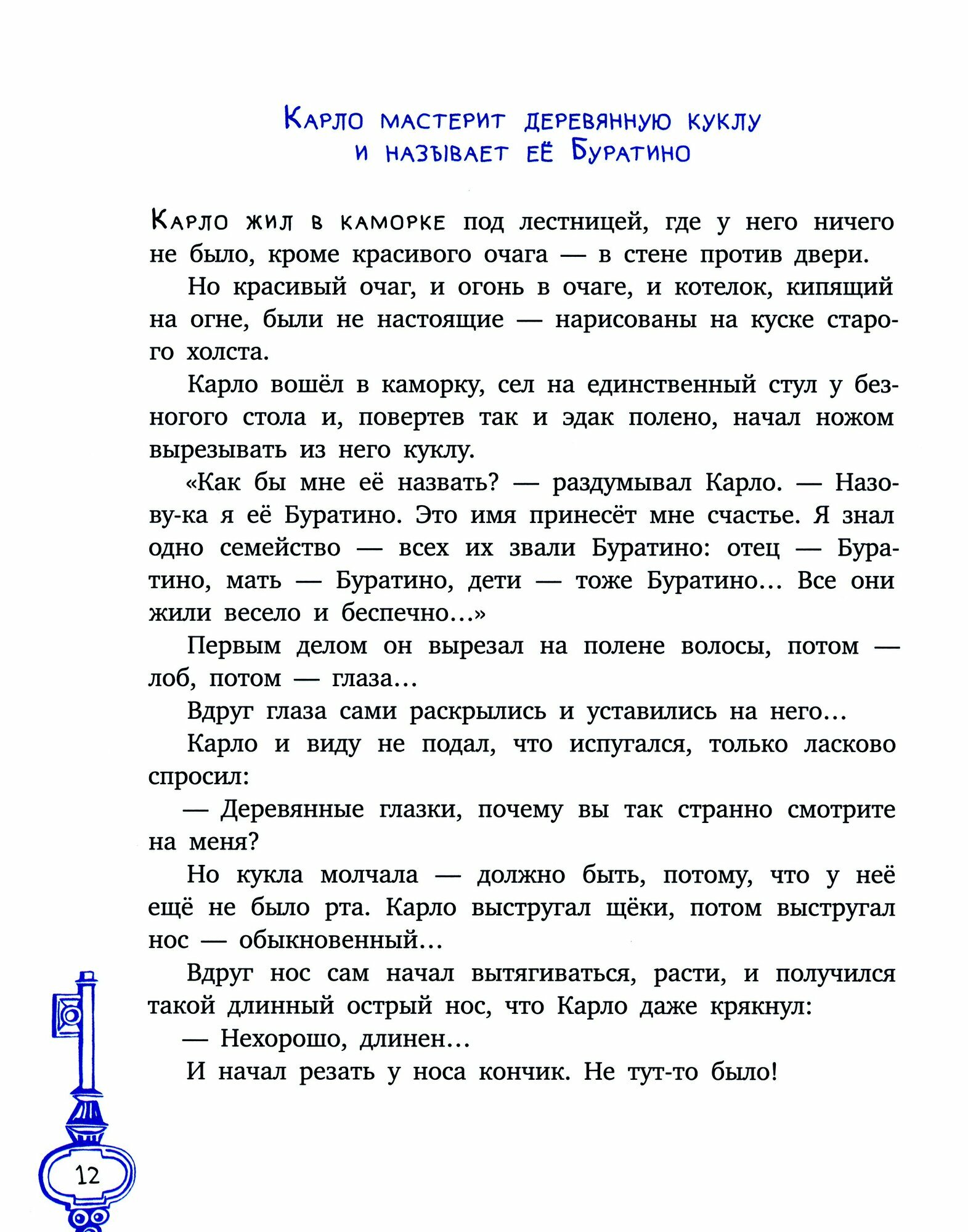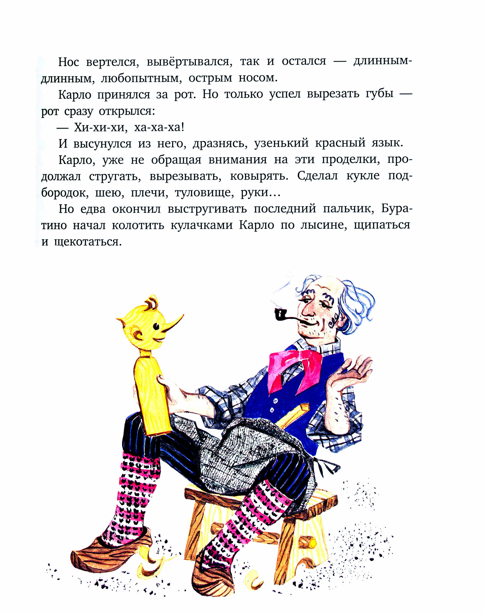Сколько же волнений доставит озорной Буратино папе Карло! Доверчивый деревянный человечек то и дело попадает в неприятности. Справится ли Буратино со злым Карабасом Барабасом? Сможет ли он разгадать тайну золотого ключика? Удивительно тёплые и нежные иллюстрации Нинель Пироговой к любимой сказке Алексея Толстого спустя полвека возвращаются к читателям.