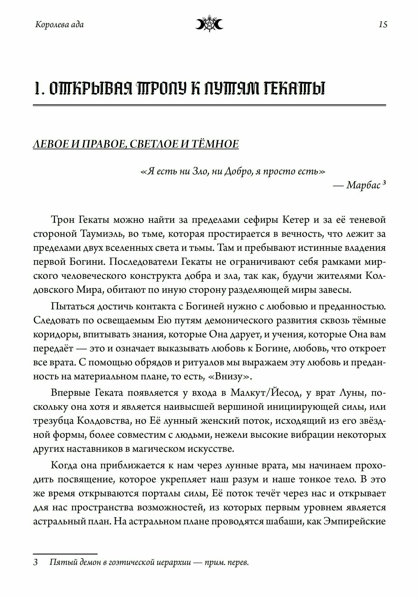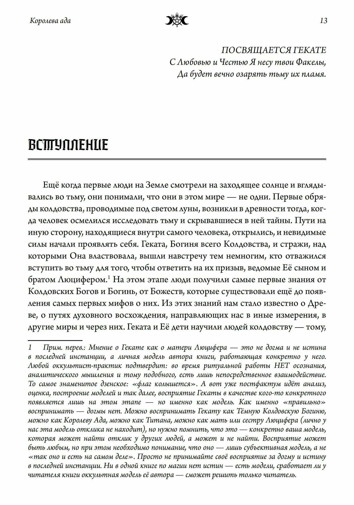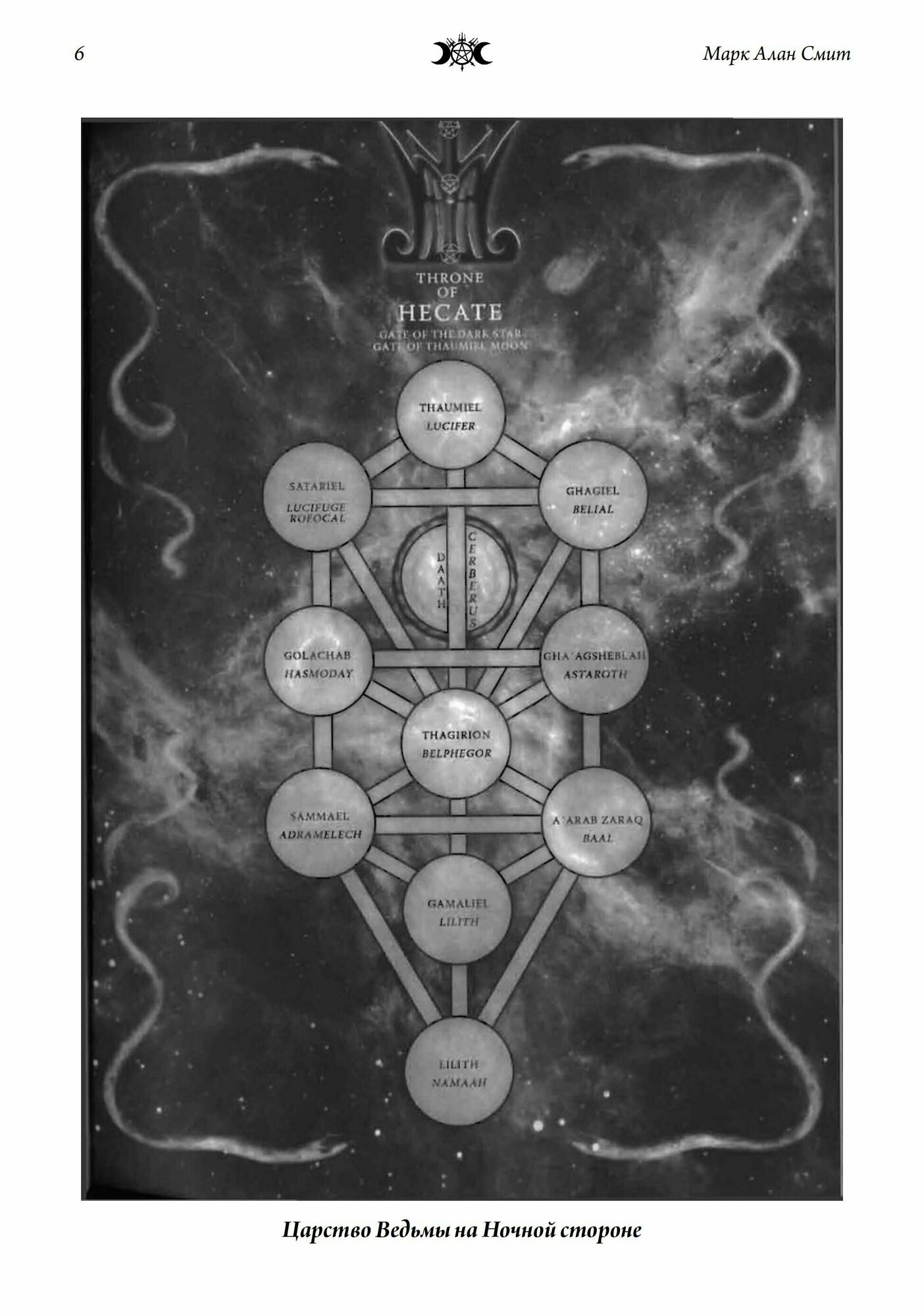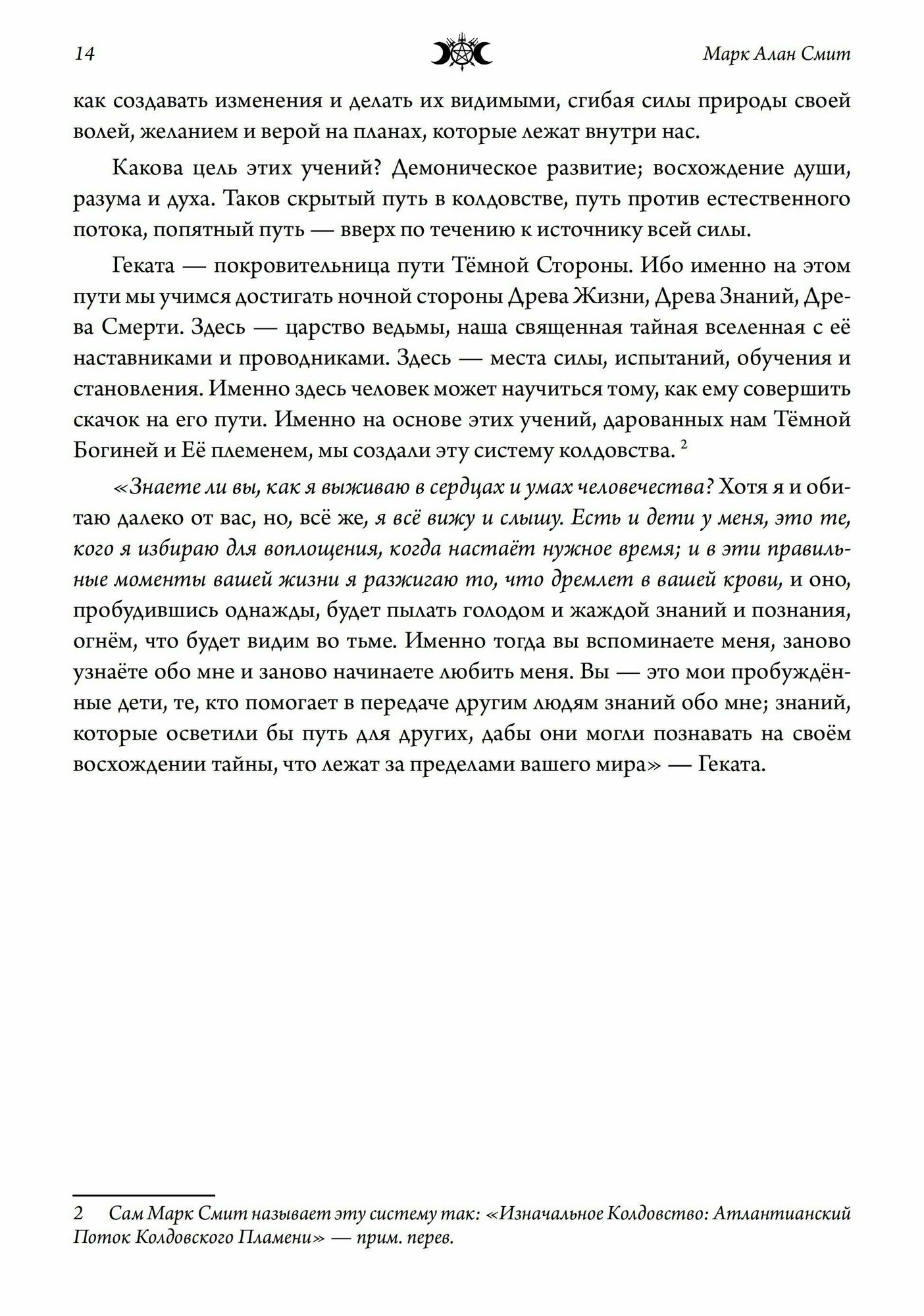 Марк Алан Смит - последователь Гекаты, который практикует колдовство почти три десятилетия. В этом томе он, опираясь на свой личный гнозис, переосмысливает всю концепцию Гекаты и её искусства, противопоставляя свой труд фрагментарным работам прошлого. Путь Темной Королевы начинается с Клипотического посвящения, за которым следует переход через Великую Бездну в царство Люцифера и Внешние врата Ночи, которые открывают путь к трону Богини всего колдовства. В книге содержится множество сигилов, символов и иллюстраций Колдовских богов, которые ведут адепта через цепочки посвящений.