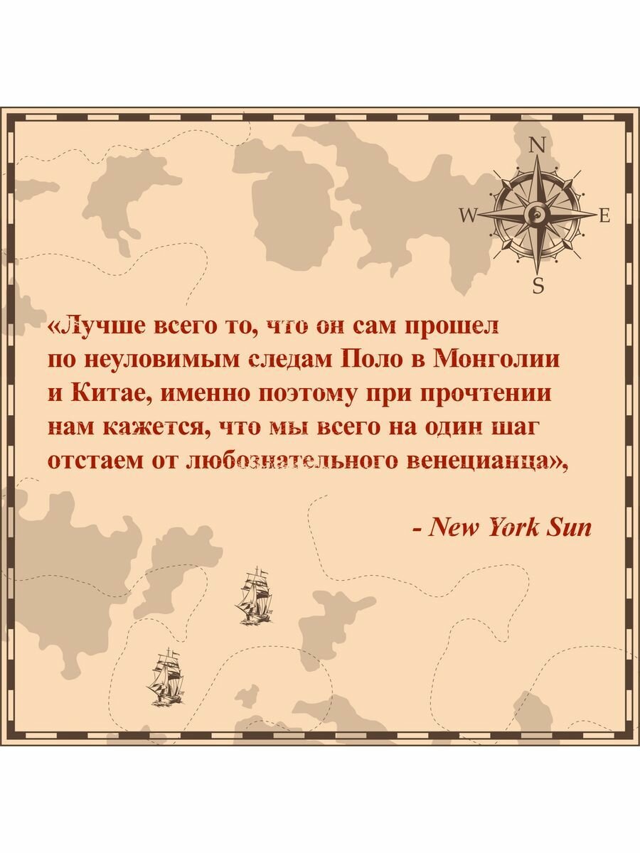 Марко Поло - купец, исследователь, авантюрист и путешественник XIII века - был первым и, пожалуй, самым известным европейцем, совершившим длительное путешествие по Азии и проложившим мост между Востоком и Западом. Странствия привели его к границам знакомого тогда Европе мира и за их пределы по опасному Шелковому пути ко двору Хубилай-хана, где он завоевал доверие могущественного правителя Монгольской империи. Вернувшись, венецианец познакомил соотечественников с культурными богатствами Востока, положив тем самым начало многовековому увлечению Азией.