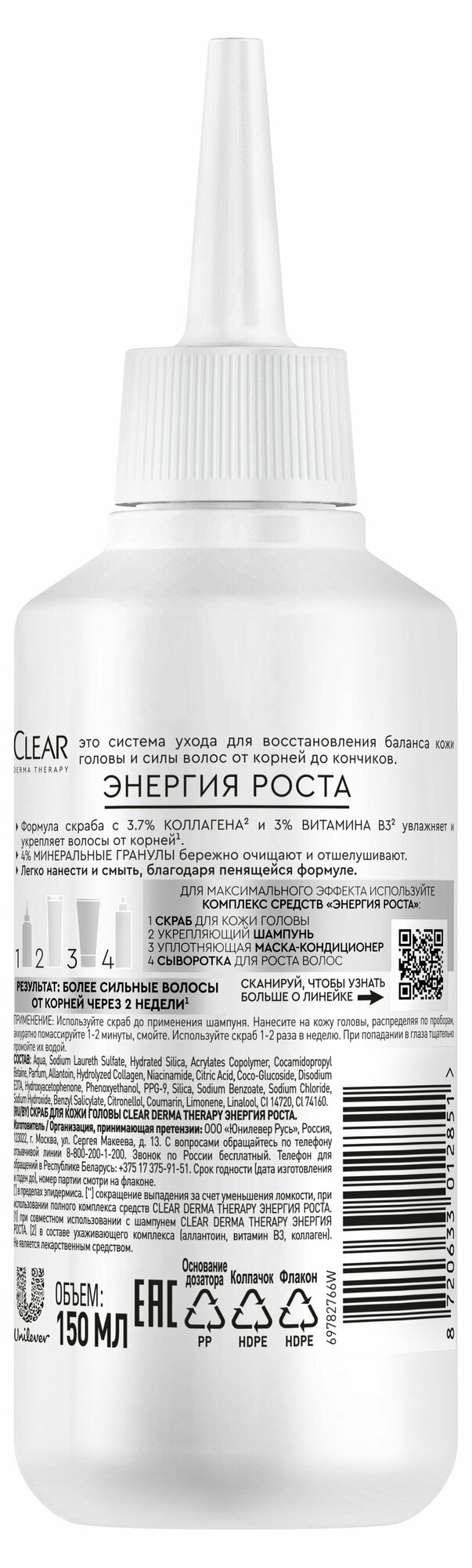 Скраб для кожи головы Clear Derma Therapy Энергия роста 150мл Unilever