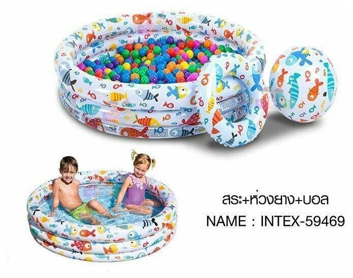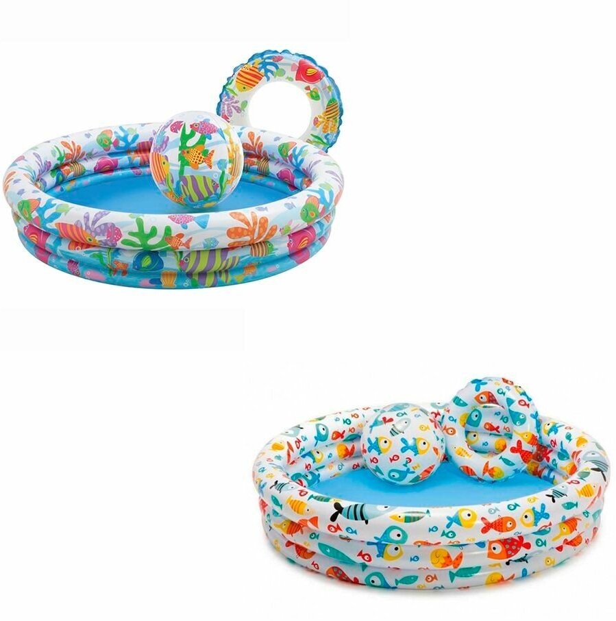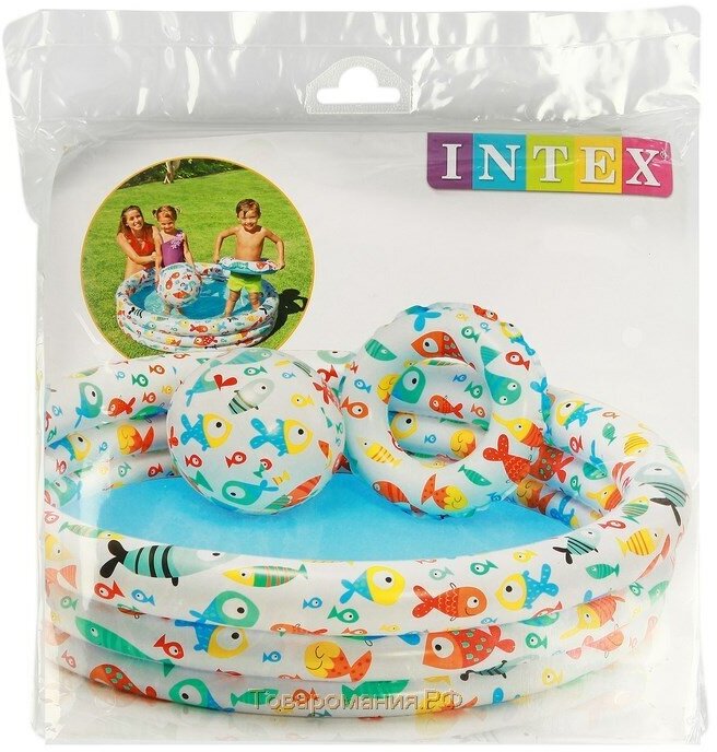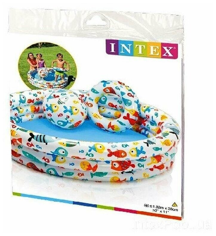 - Детский надувной бассейн 3 кольца мяч, круг 59469