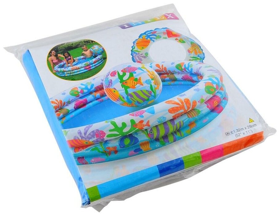Детский надувной бассейн 132х28см "Рыбки" с мячом и кругом, 204л, от 2 лет. Набор включает в себя надувной бассейн, который украшен морским рисунком, а также большой надувной мячик и круг. Набор изготовлен из высокопрочного ПВХ, поэтому прослужит вам долгое время. Подойдет для использования как в квартире, так и на даче. Для детей от 2 лет. Состоит из 2 надувных колец.