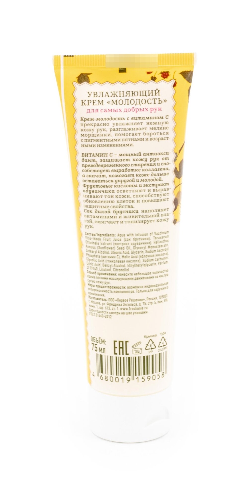 Крем-молодость с витамином С прекрасно увлажняет нежную кожу рук, разглаживает мелкие морщинки, помогает бороться с пигментными пятнами и возрастными изменениями.