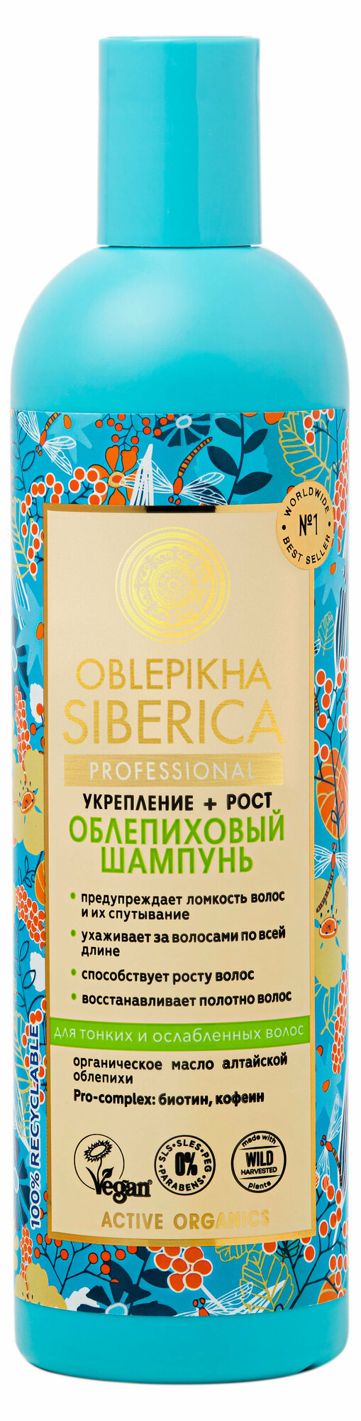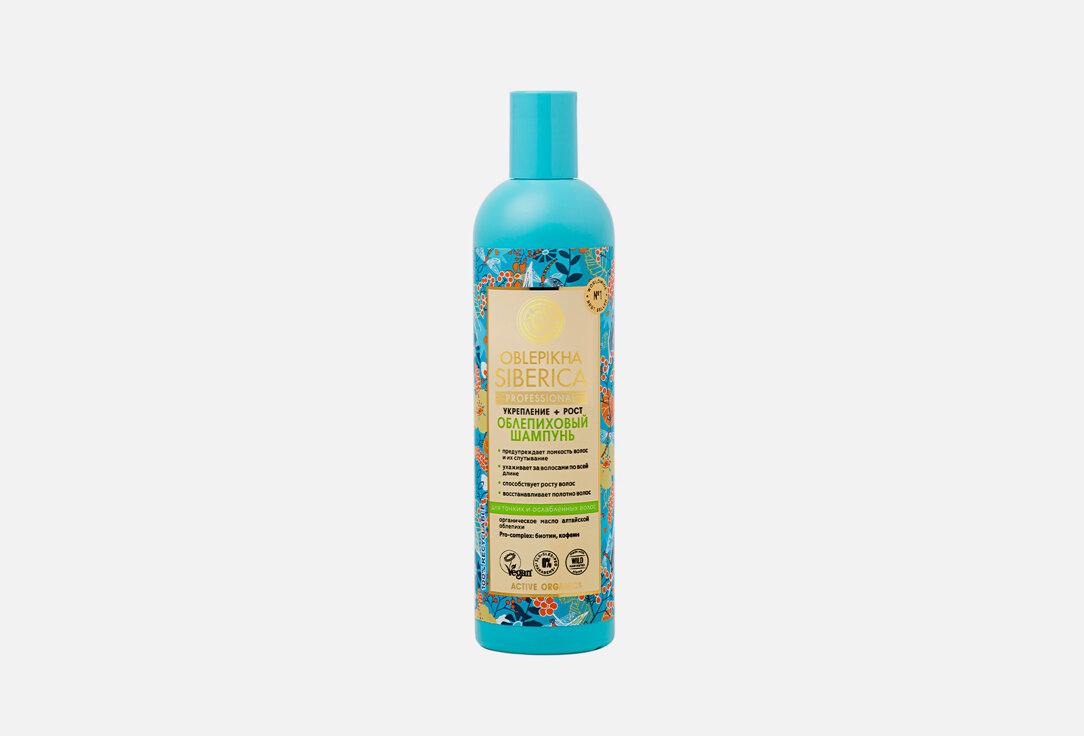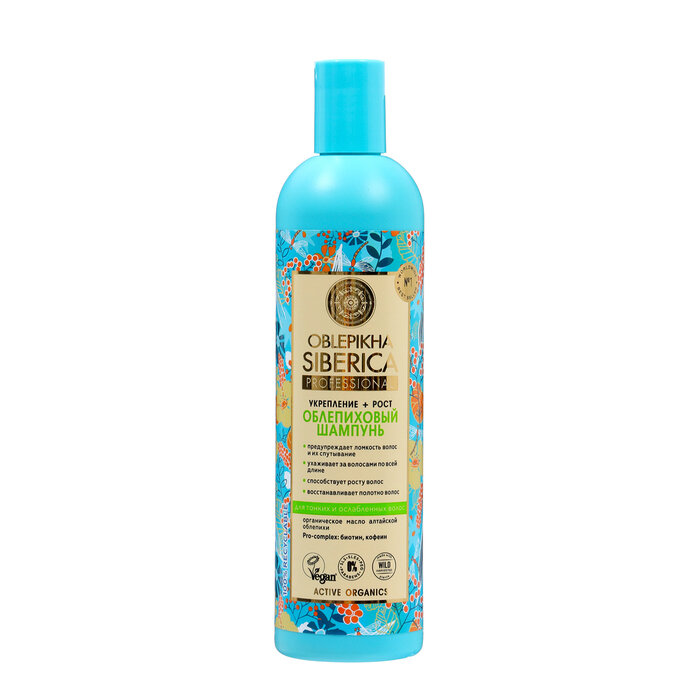 Шампунь деликатно ухаживает за волосами по всей длине, делая их более сильными и крепкими. Средство оказывает комплексное воздействие на тонкие, ослабленные волосы, обеспечивая их более ускоренный рост. Органическое масло алтайской облепихи и марокканское масло арганы источники жирных кислот Омега 3,6,9 и редкой Омега 7, ответственных за здоровье и красоту волос. Экстракт курильского бамбука укрепляет и защищает волосы, способствует их активному росту. Экстракт женьшеня сибирского, содержащий витамины, макро- и микроэлементы, оказывает тонизирующее и укрепляющее действие на волосы. Биотин пробуждает спящие волосяные луковицы, ускоряя тем самым процесс роста волос. Кофеин активизирует клеточный метаболизм, способствуя уменьшению выпадения волос.