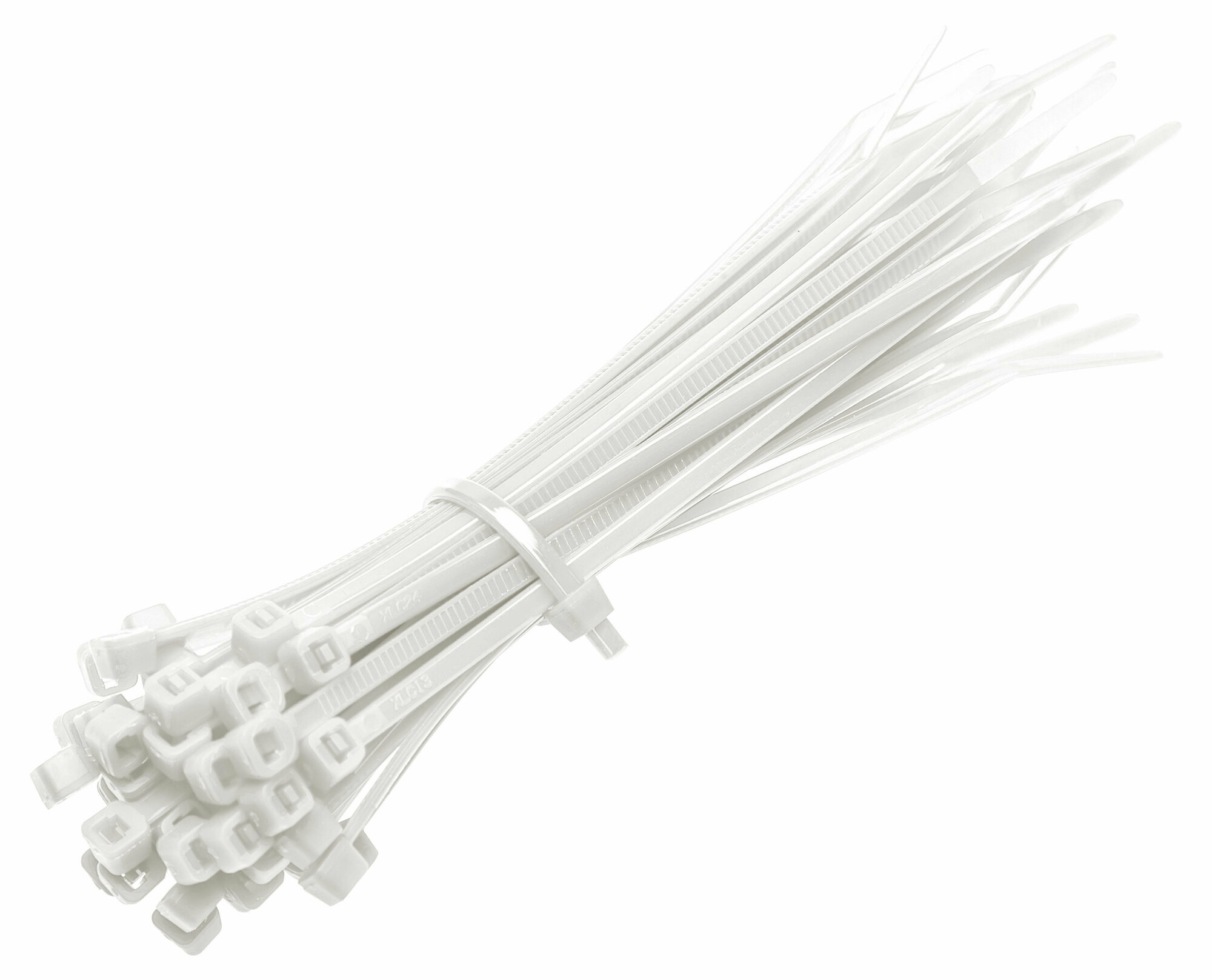 Кабельные хомуты предназначены для одноразового использования. Стяжки применяются для временной и постоянной фиксации кабелей, проводов, гофротруб. В набор входит 100шт. белого цвета.