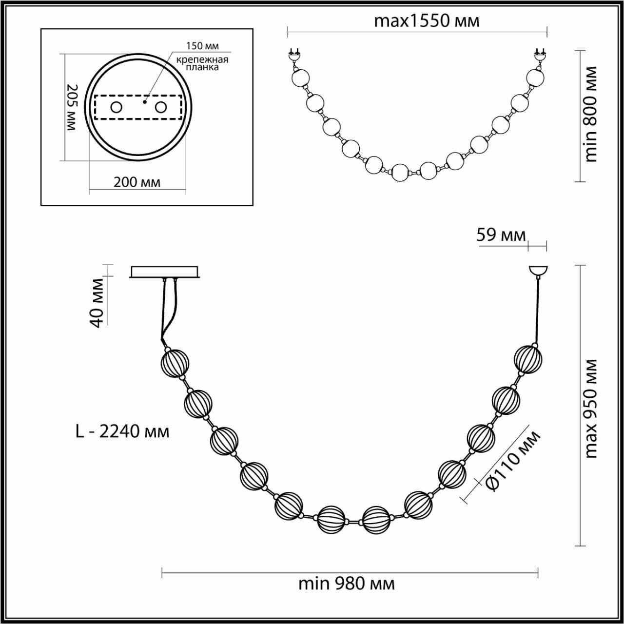 Подвесной светодиодный модуль с металлическим основанием и акриловыми плафонами.Множество акриловых шариков, имитирующих хрустальную резную фактуру, создадут непередаваемую игру света и переливов. Модели включают в себя 2 варианта установки — с накладной металлической базой и выносным драйвером. Драйвер устанавливается «за потолком» на расстоянии не более 1,5 м от люстры.