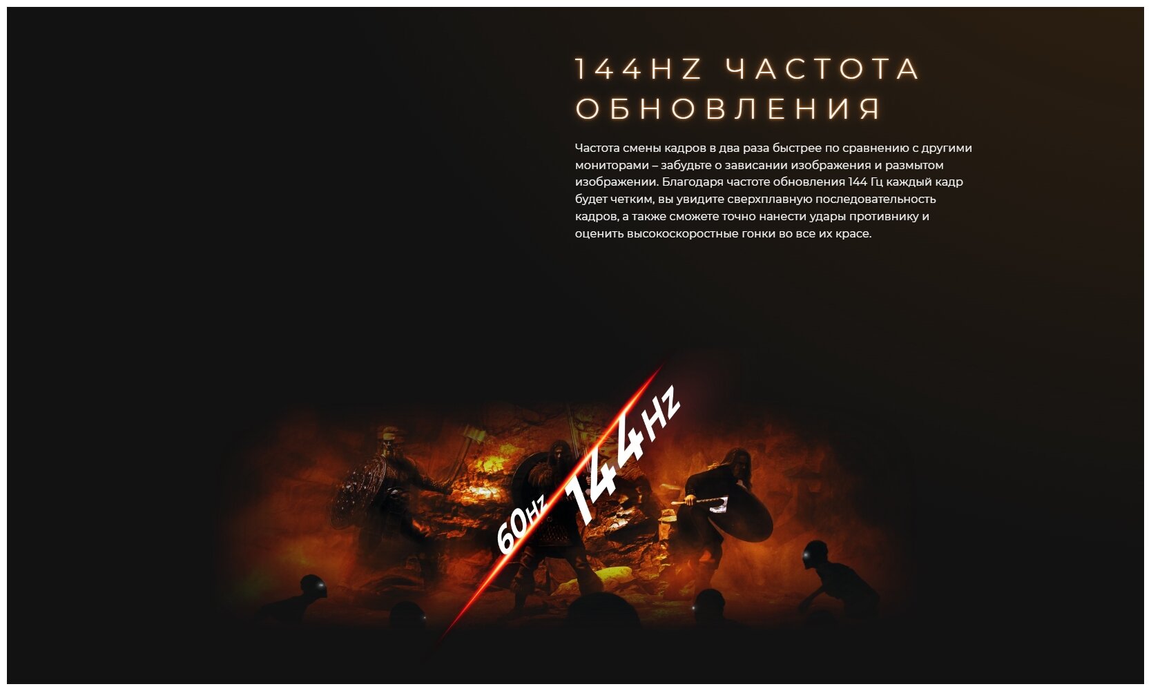 Частота обновления 165 Гц, что более чем в два раза больше по сравнению со стандартом 60 Гц, превращает игры в истинное удовольствие. Реализуйте потенциал своего видеоадаптера. Забудьте про разрывы изображения и попрощайтесь с размытым изображением. Почувствуйте как ваши рефлексы преобразуются в непосредственные действия. Никогда не оглядывайтесь.