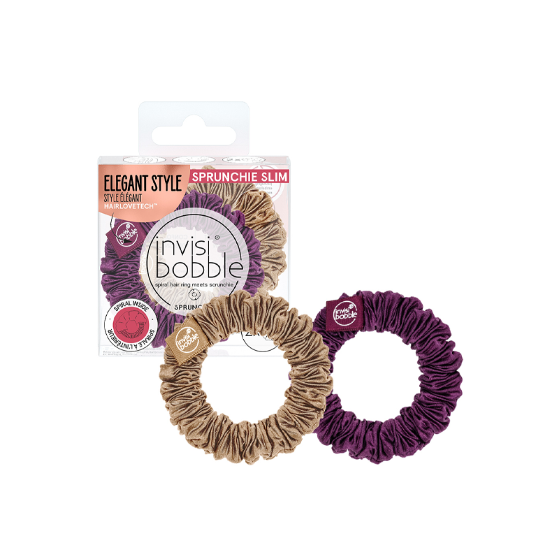 Набор резинок-браслетов для волос invisibobble — это две очаровательные резиночки из атласной ткани в коричневом и фиолетовом оттенках. Внутри The Snuggle is Real спрятана модель SLIM. Эластичные и элегантные Sprunchie Slim идеальны для создания как повседневных, так и вечерних образов – комбинируйте резиночки, чтобы подчеркнуть свою индивидуальность. Аксессуары invisibobble надежно фиксируют прическу, не оставляют заломов и не вызывают головную боль. Подходят для всех типов волос.