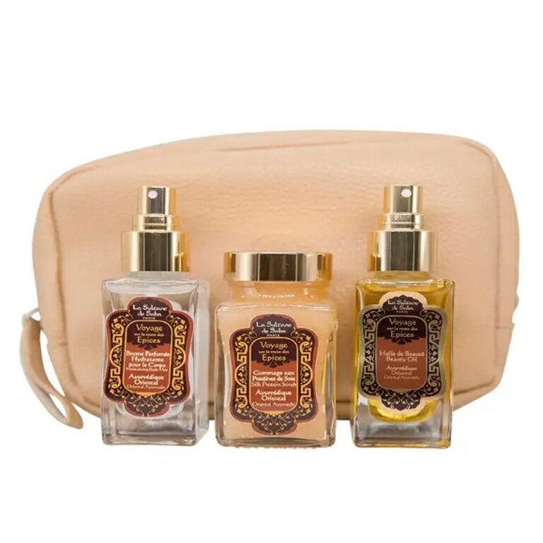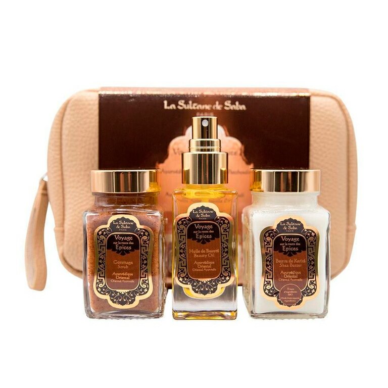 Набор La Sultane de Saba "Путешествие по дороге специй" серии "Аюрведа" прежде всего предназначен для спа-процедур.-Гоммаж La Sultane de Saba "Аюрведа" прекрасно очищает и отшелушивает, подготавливая кожу к дальнейшим процедурам спа.- Масло для тела La Sultane de Saba серии "Аюрведа" делает кожу мягкой и эластичной, сохраняет необходимый коже водный баланс.- Масло карите этой серии можно использовать не только для тела, но и для лица, и для волос. Также масло карите благотворно влияет на кутикулу ногтей. Кроме того, оно оказывает смягчающее оздоровительное действие не только на кожу, но и на волосы.Среди ароматов серии "Аюрведа" La Sultane de Saba: роза, сандал, камфора, ваниль, ландыш, пачули и бергамот.
