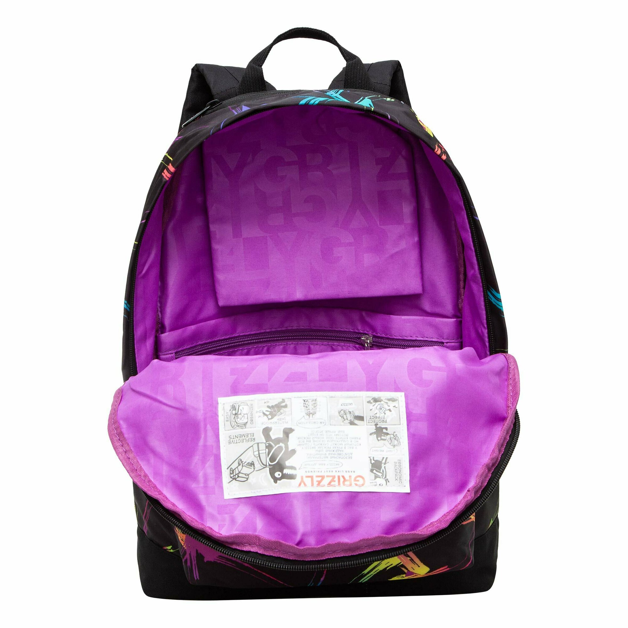 Небольшой стильный и легкий городской рюкзак GRIZZLY для прогулок и путешествий, отдыха и спорта, работы и магазина, школы и института. Этот эргономичный городской рюкзак продуман до мелочей. Он имеет одно вместительное основное отделение с карманом для планшета или ноутбука 13" и карман быстрого доступа в верхней части рюкзака. У рюкзака большой накладной карман спереди, удобная укрепленная спинка, регулируемые мягкие лямки и ручка для переноски. Материал рюкзака с водо- и грязеотталкивающей пропиткой. Двунаправленные реверсные молнии с брендированными пуллерами на замках позволяют легко открывать и закрывать рюкзак. Рюкзак имеет прочную и грязеотталкивающую фирменную подкладку GRIZZLY.