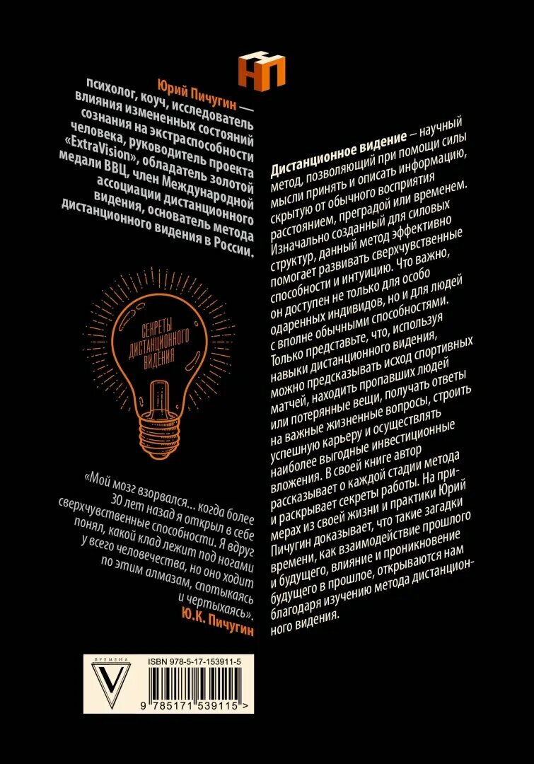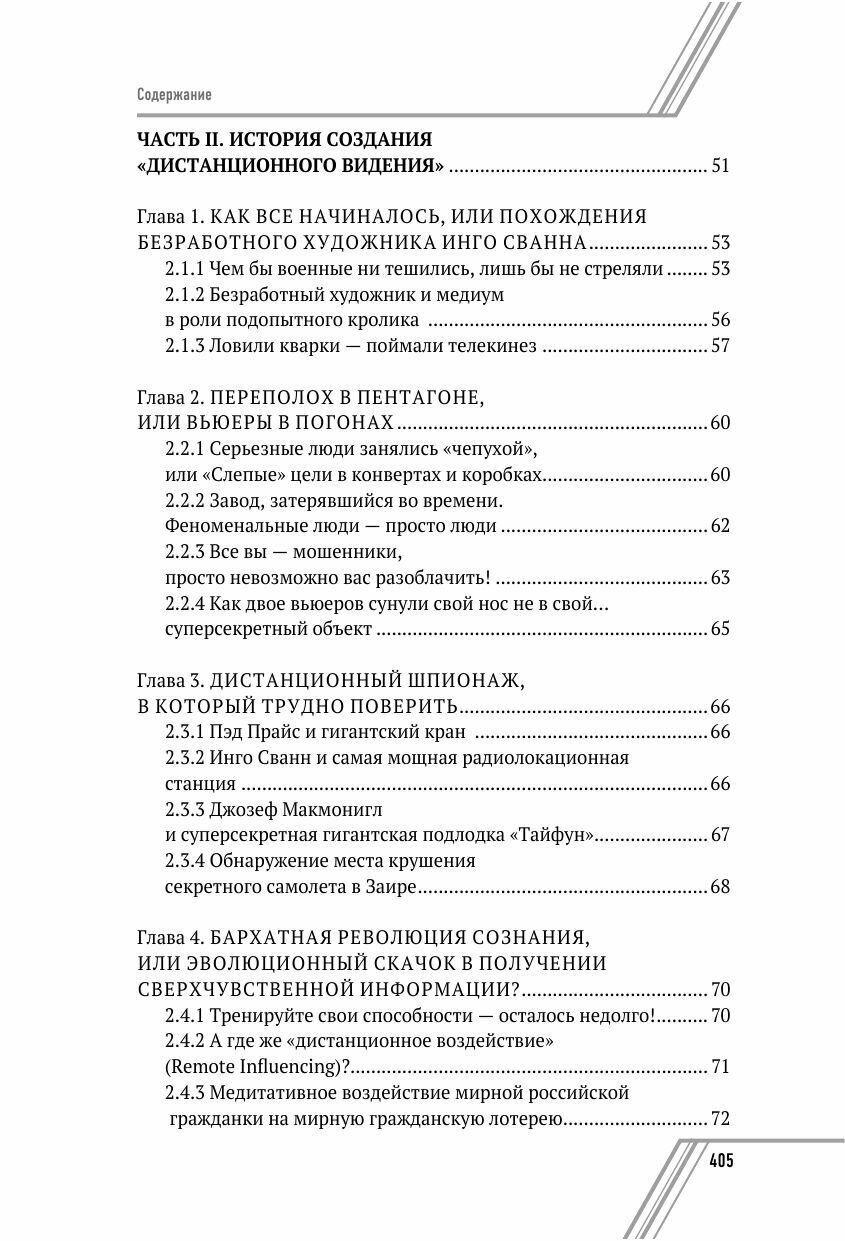 Дистанционное видение - научный метод, позволяющий при помощи силы мысли принять и описать информацию, скрытую от обычного восприятия расстоянием, преградой или временем. Изначально созданный для силовых структур, данный метод эффективно помогает развивать сверхчувственные способности и интуицию. Что важно, он доступен не только для особо одаренных индивидов, но и для людей с вполне обычными способностями. Только представьте, что, используя навыки дистанционного видения, можно предсказывать исход спортивных матчей, находить пропавших людей или потерянные вещи, получать ответы на важные жизненные вопросы, строить успешную карьеру и осуществлять наиболее выгодные инвестиционные вложения. В своей книге автор рассказывает о каждой стадии метода и раскрывает секреты работы. На примерах из своей жизни и практики Юрий Пичугин доказывает, что такие загадки времени, как взаимодействие прошлого и будущего, влияние и проникновение будущего в прошлое, открываются нам благодаря изучению метода дистанционного видения.