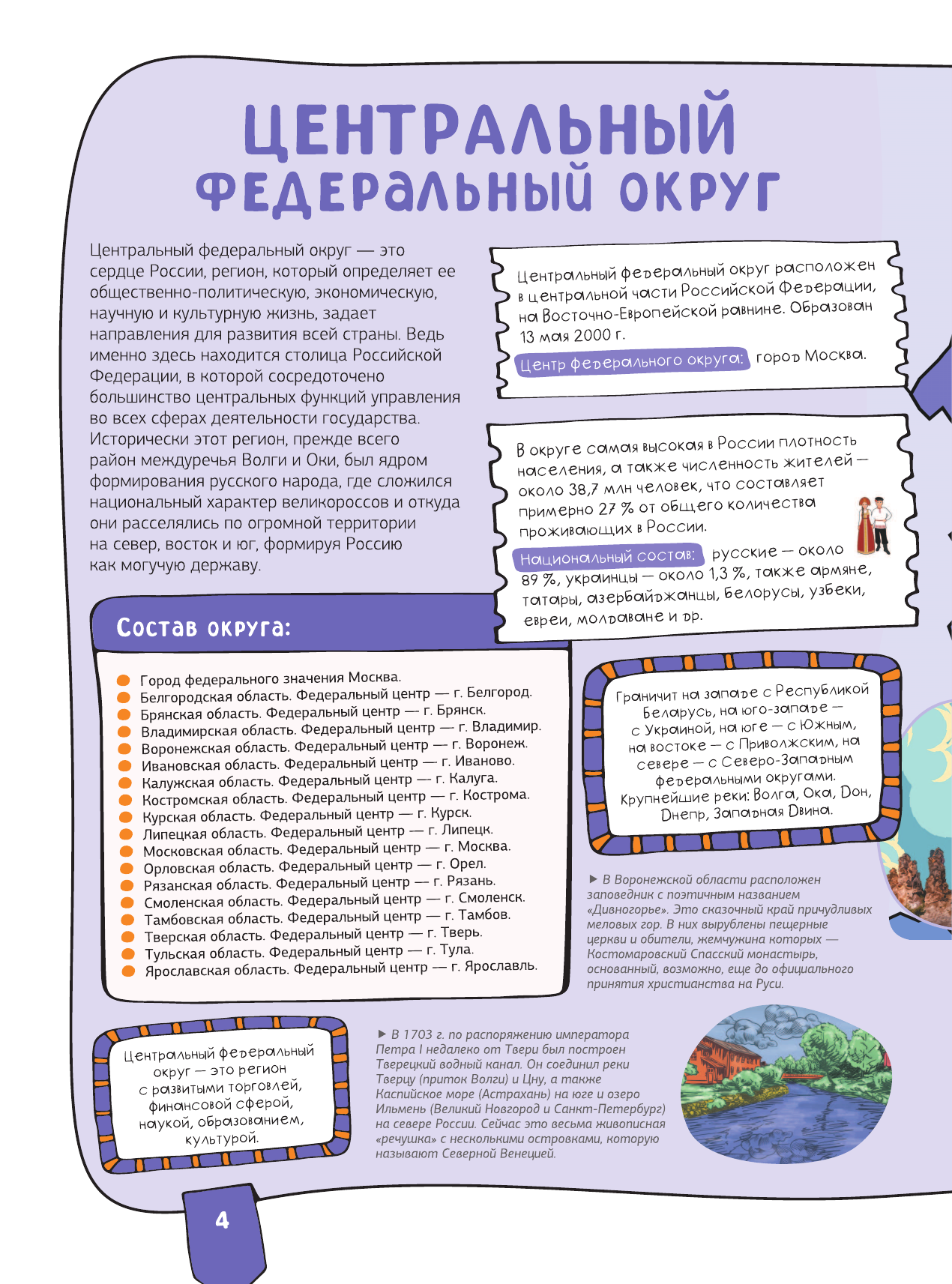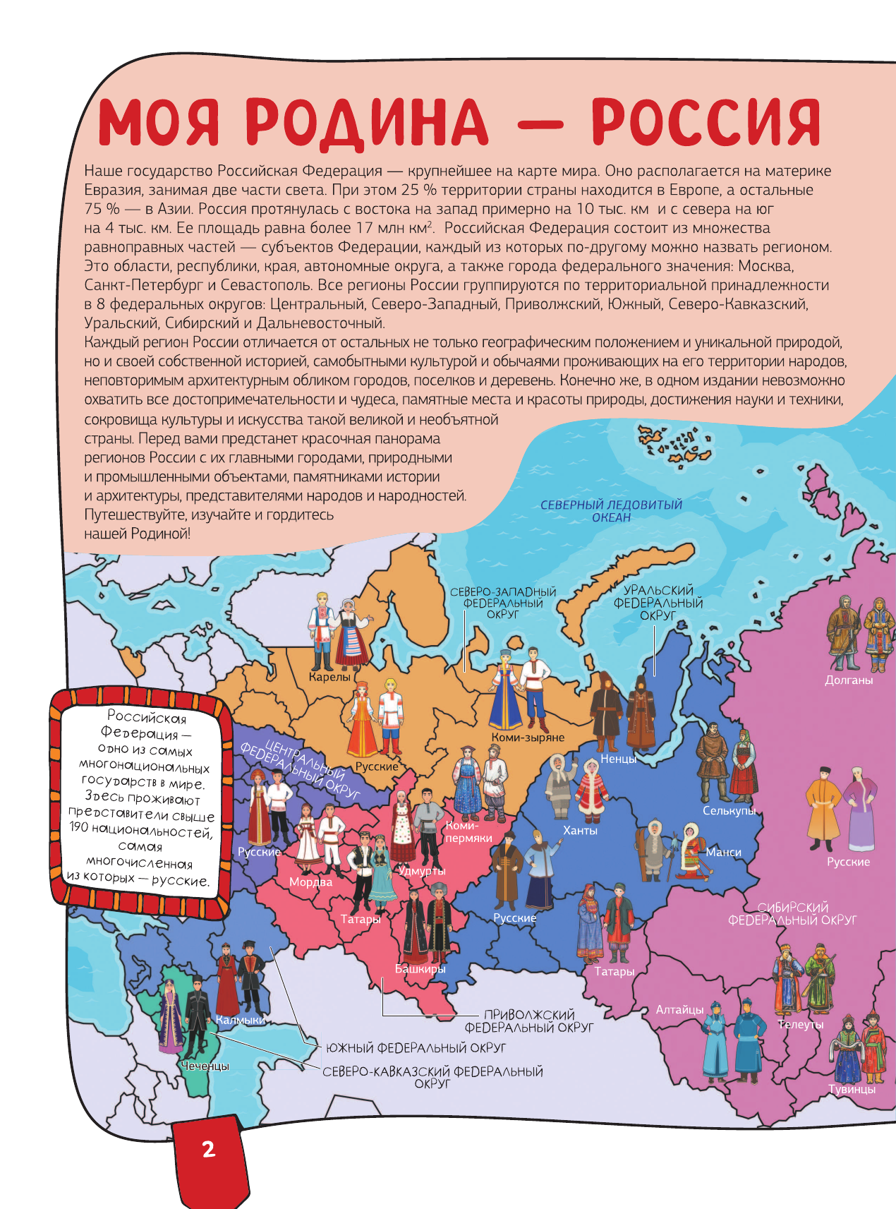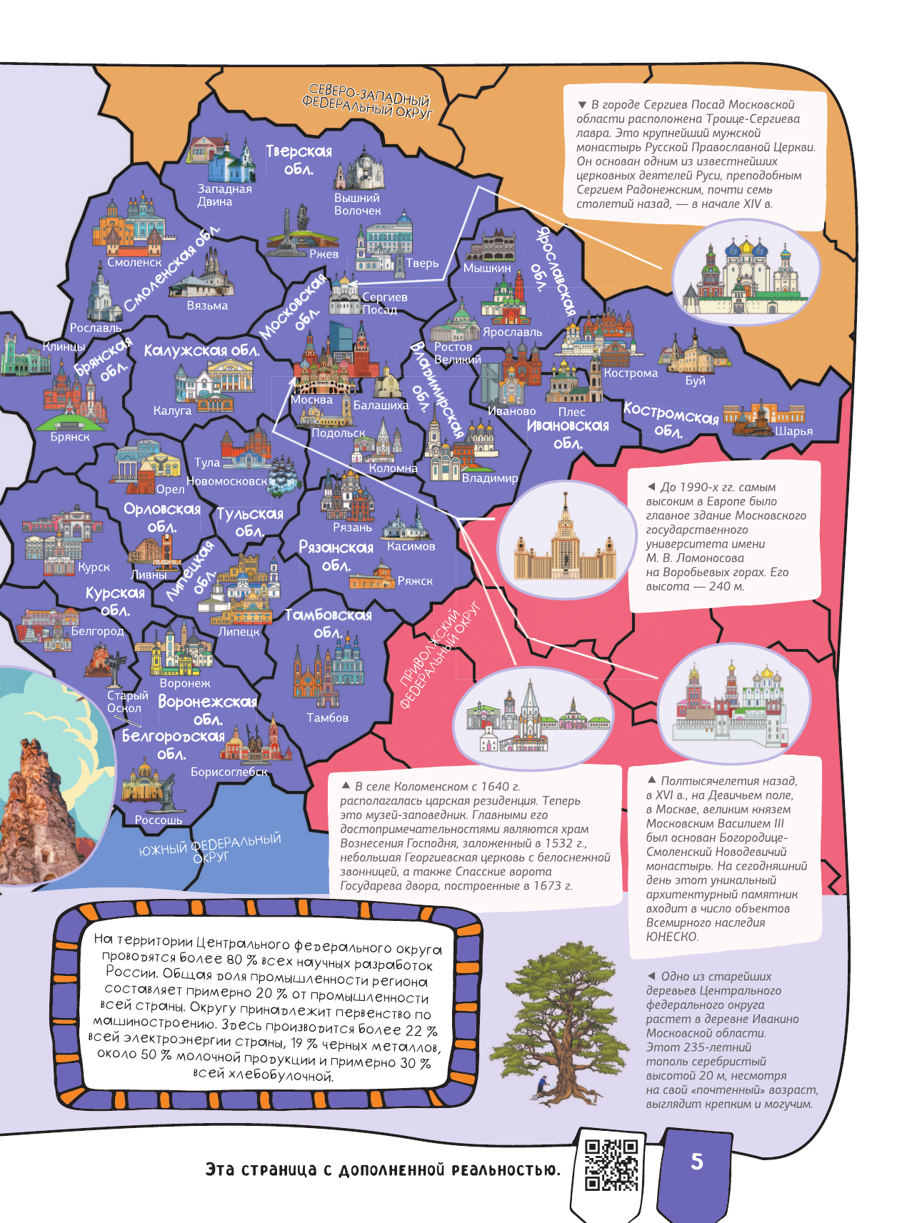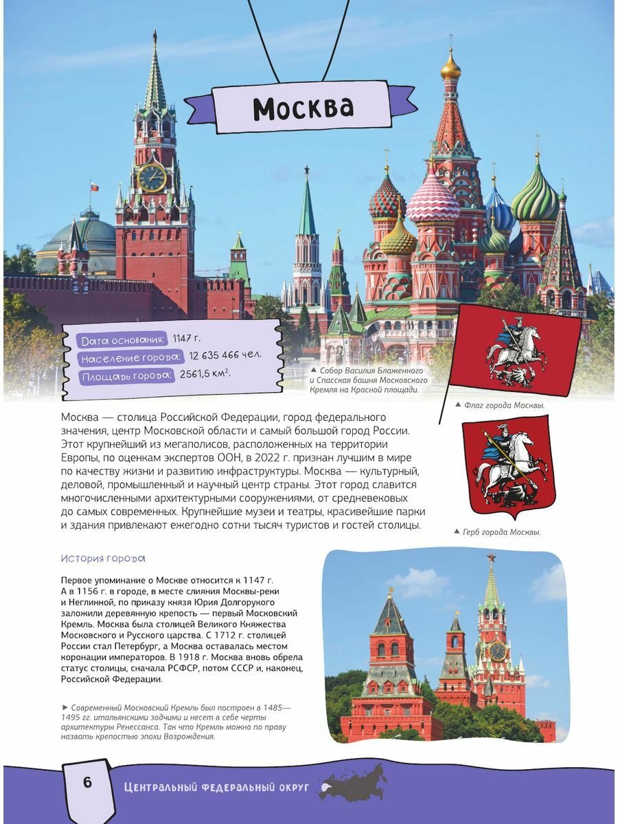 Эта книга нового поколения с дополненной реальностью приглашает отправиться в увлекательное путешествие по необъятной России. Вы познакомитесь с республиками, областями и краями Российской Федерации, с ее главными городами и достопримечательностями, древними и современными архитектурными сооружениями, крупнейшими музеями и национальными парками, заповедными местами и природными чудесами. Издание расскажет юным читателям много нового о достижениях науки и техники, самобытной истории и культуре, народных традициях и праздниках в различных регионах нашей страны, а также представит