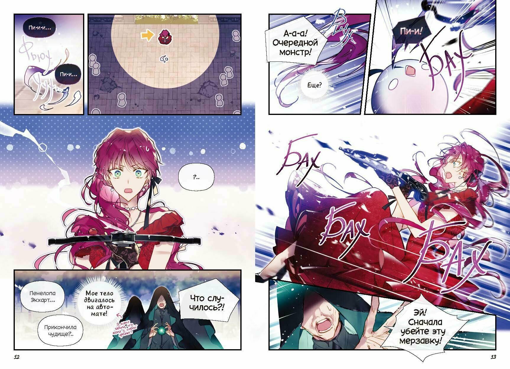1. Умная, расчетливая героиня, которая умеет сама решать свои проблемы. Пенелопа не сидит, \"сложа лапки\", а идет к своей цели. Ее поступки местами эгоистичны и жестоки, но тем она и кажется живой! Ее противоречивые поступки заставляют задуматься, \"примерить\" ситуацию на себя - поступила бы я иначе на ее месте - а не вгоняют в испанский стыд, как многие героини комиксов этого жанра. За Пенелопой действительно интересно следить, и даже заезженность идеи - попаданка в злодея симулятора свиданий - не кажется такой уж заезженной.
