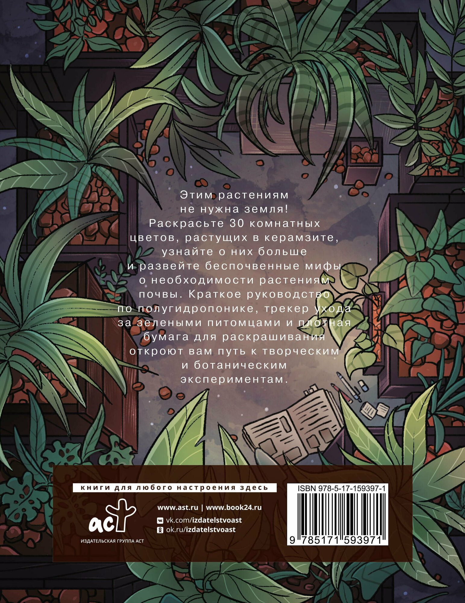 Этим растениям не нужна земля! Раскрасьте 30 комнатных цветов, растущих в керамзите, узнайте о них больше и развейте беспочвенные мифы о необходимости растениям почвы. Краткое руководство по полугидропонике, трекер ухода за зелеными питомцами и плотная бумага для раскрашивания откроют вам путь к творческим и ботаническим экспериментам.