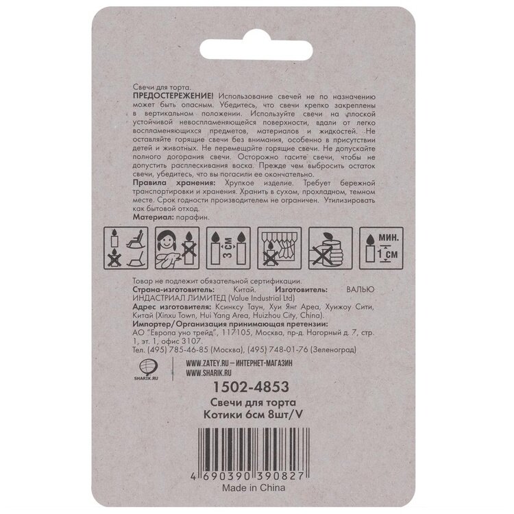 На сегодняшний день товар «Свечи для торта Веселая затея котики 6 см 8 шт» можно купить с кешбеком в 1 магазине: Яндекс.Маркет