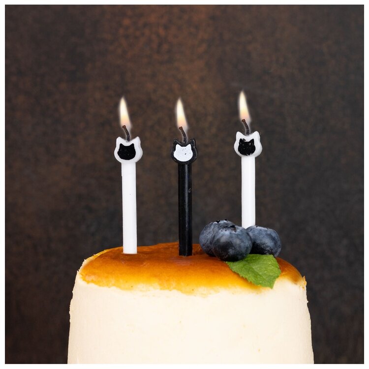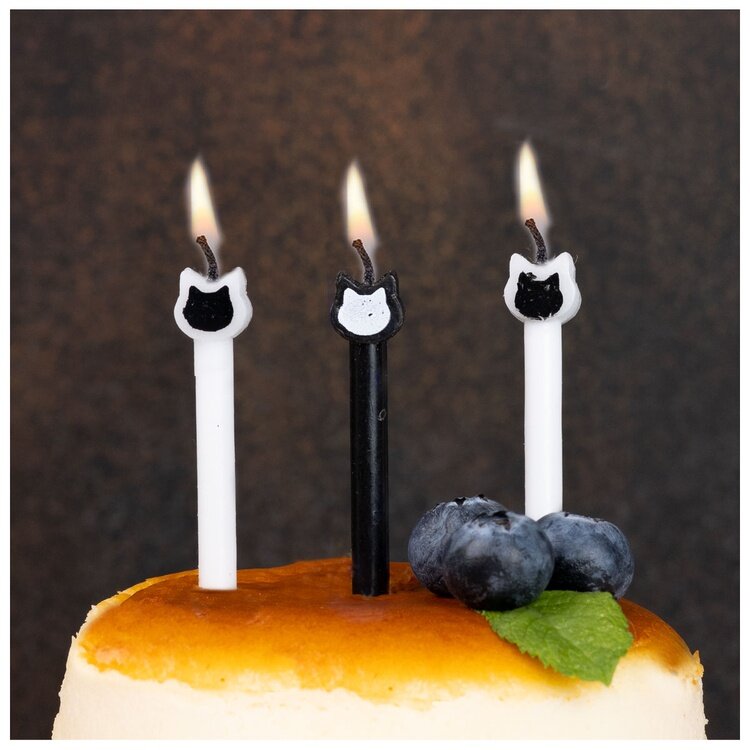 Декоративное украшение праздничного стола. Черные и белые свечи с Котиками. Отличное решение для декорирования торта, десерта ко Дню рождения. Парафин, оригинальный дизайн. Высота свечей 6см, в упаковке 8 штук без подставок. Коллекция Котики.
