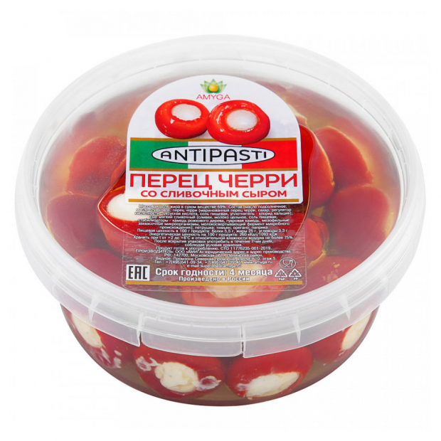 Яркое сочетание хрустящих острых-сладких перчиков черри и нежнейшего сливочного сыра!